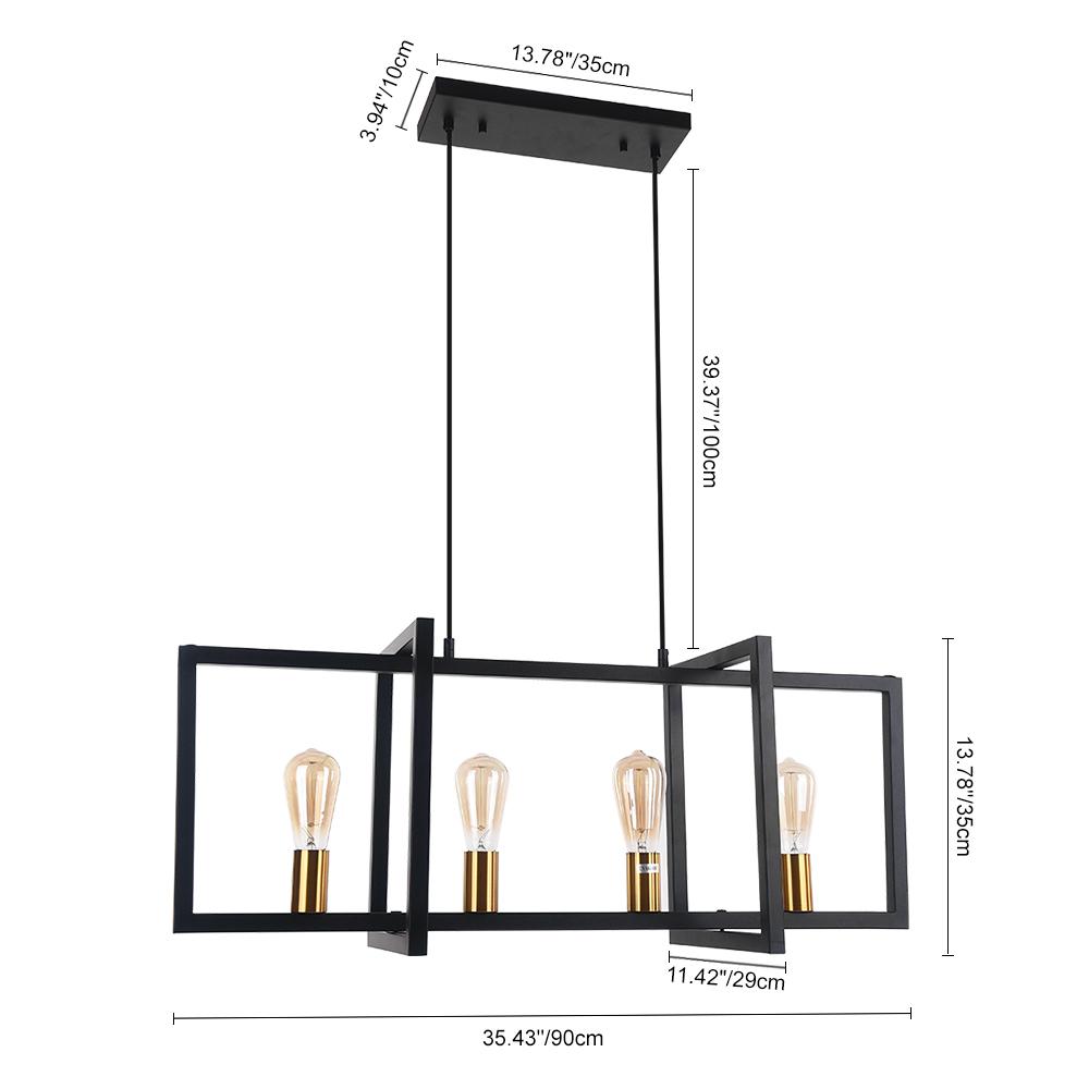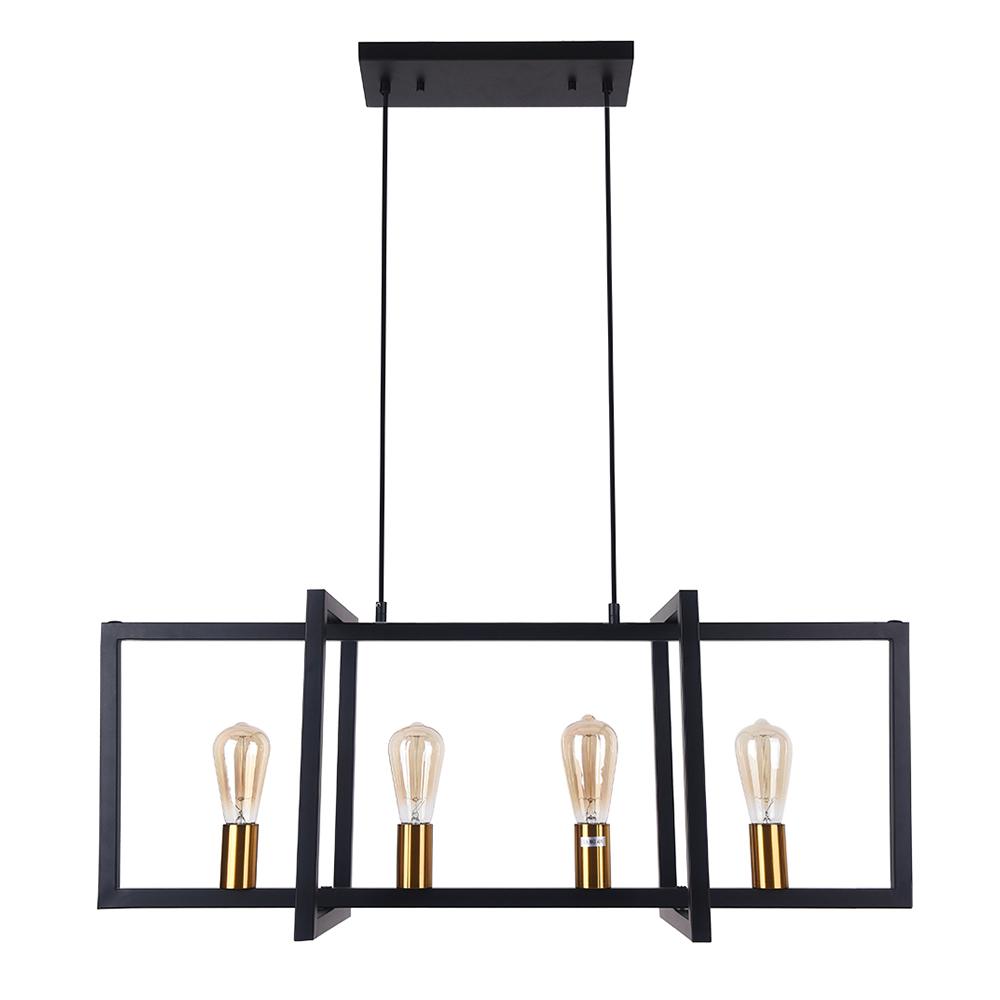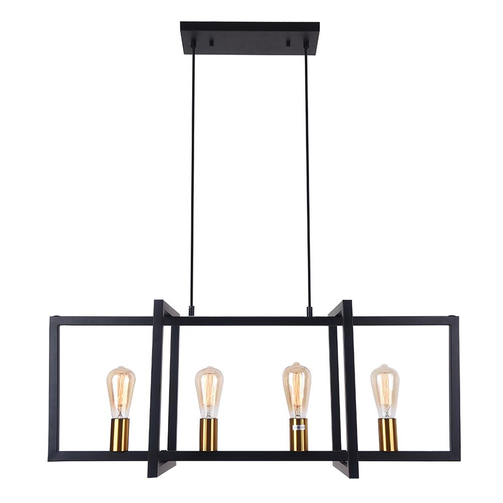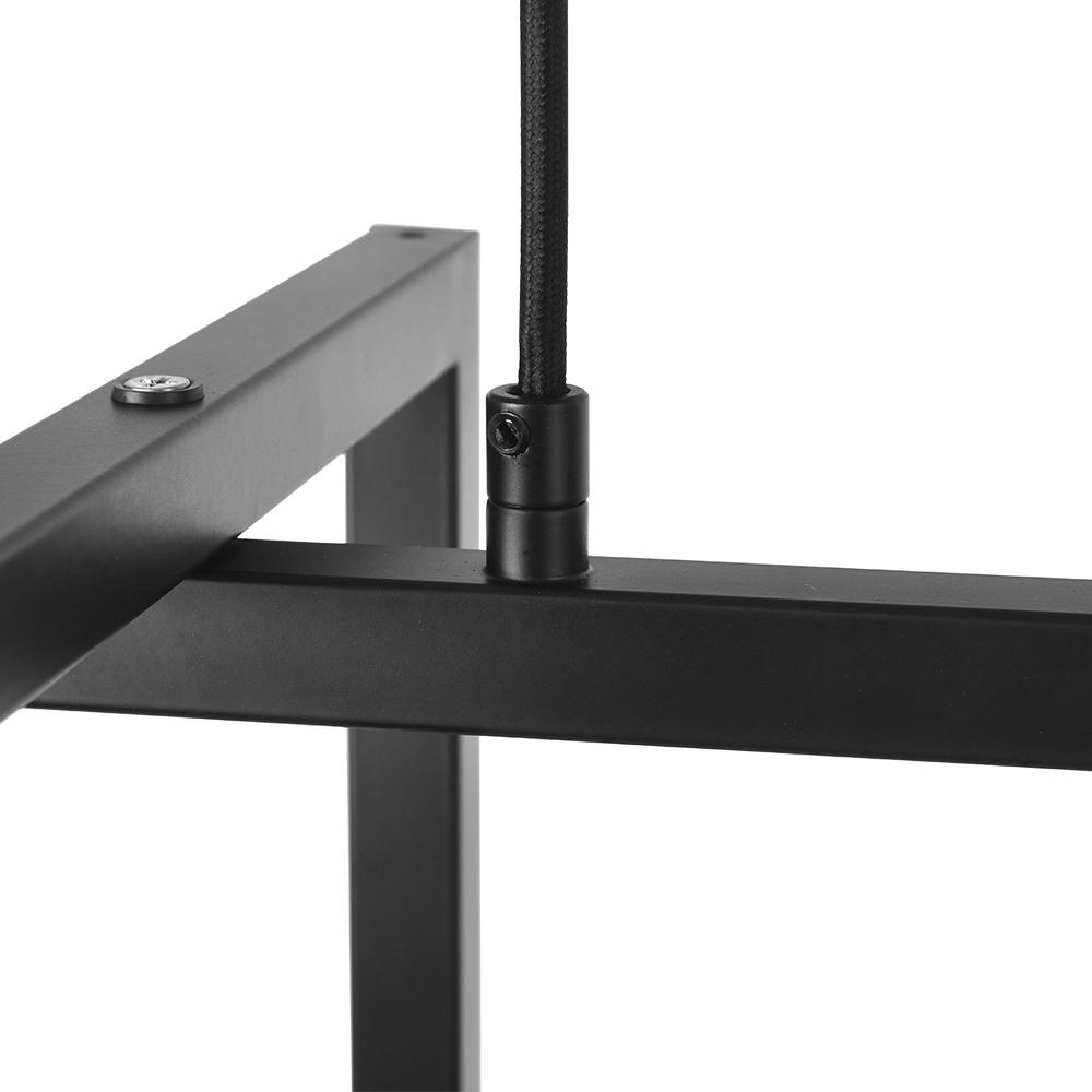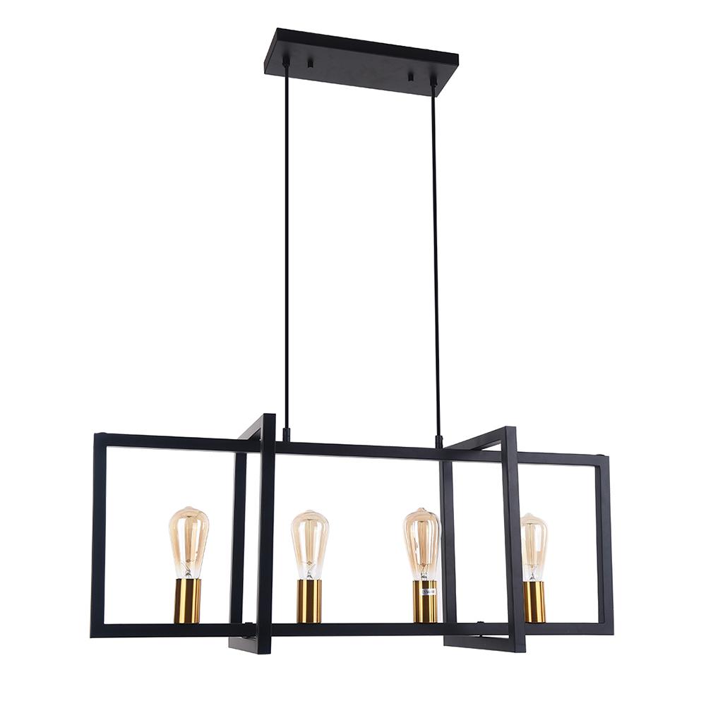 Valaisitpa sitten keittiön työtasoa tai lisäätpä tyylikkään lisäyksen ruokapöytäsi yläpuolelle, tämä neljän valon keittiösaarekeriipus on työteliäs valaisin jokaiseen kotiin maalaistaloon. Tässä suorakaiteen muotoisessa katoksessa ja kahdessa kestävässä alaspäin suuntautuvassa pylväässä ripustetussa maalaistalon lineaarisessa kattokruunussa on geometrisesti muotoiltu avoin häkkikehys. Musta viimeistely täydentää tämän keittiösaarekkeen lineaarisen riipuksen maalaismaisella teollisella aksentilla. Neljä esillä olevaa 40 W E26/E27-keskikantaista polttimoa (ei sisälly toimitukseen) peräkkäin rungossa, joten tämä musta suorakaiteen muotoinen kattokruunu tarjoaa runsaasti työvalaistusta ympäristöön. Säädettävien johtojen avulla voit ripustaa tämän maalaistalon keittiösaarekkeen lineaaririipuksen korkeaan tai matalaan kattoon. Vaikuttavan ulkonäön ja koon (90 cm x 35 cm) ansiosta tämä moderni maalaistalon lineaarinen kattokruunu sopii erinomaisesti keittiöön, ruokasaliin ja olohuoneeseen, jotta se näyttäisi näyttävästi.Detail