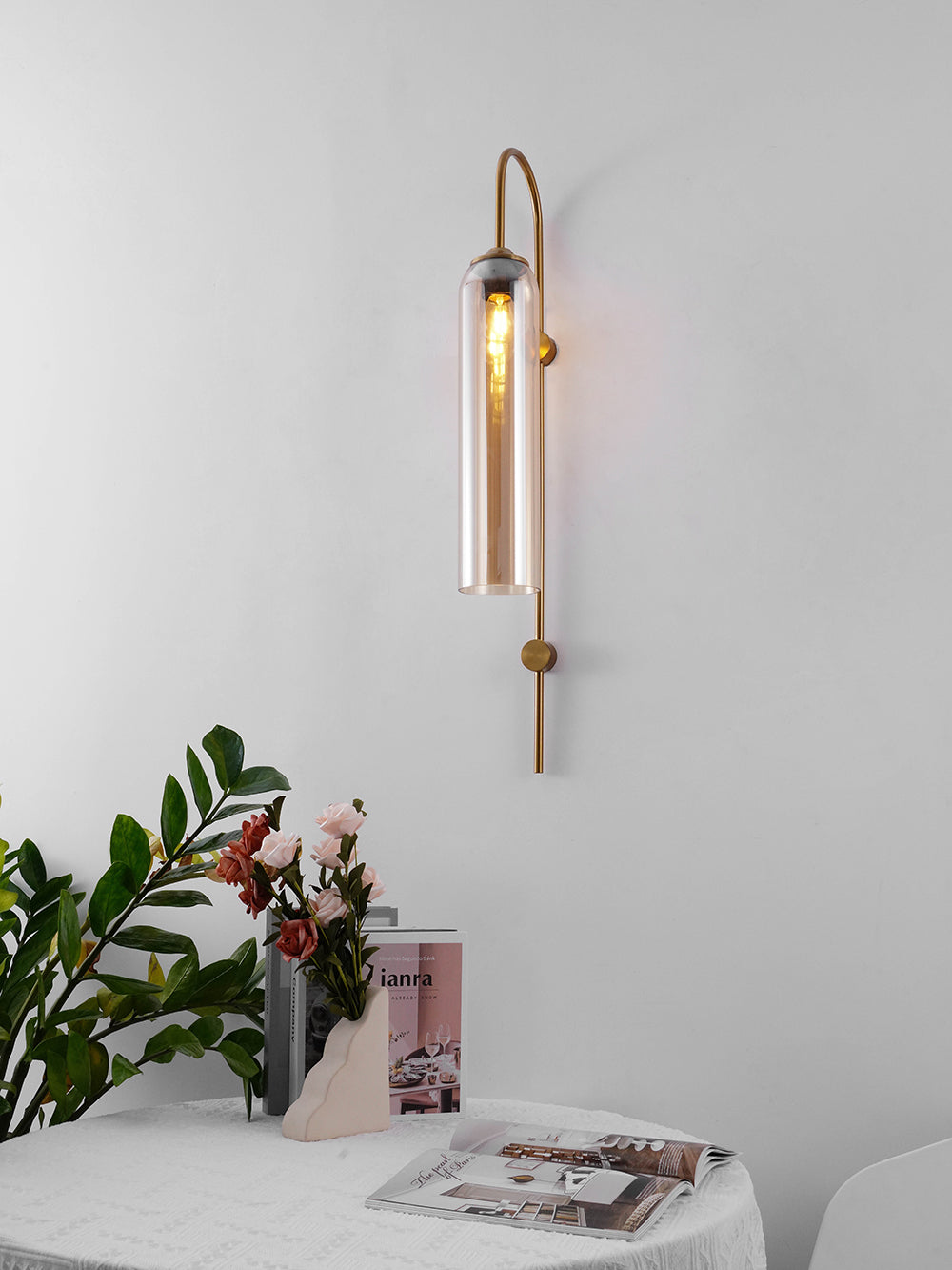 Lasiseinävalaisin on kokoelma hienostuneita valaisimia, jotka kertovat menneen aikakauden lumoavista designvihjeistä ja jotka määritellään sen huiman sylinterimäisen muodon ansiosta. Jokainen suupuhallettu pala on väsymättä viimeistelty ja ainutlaatuisen yksilöllinen. Syntynyt arvostetuksi seinävalaisimena.