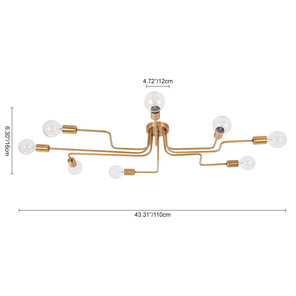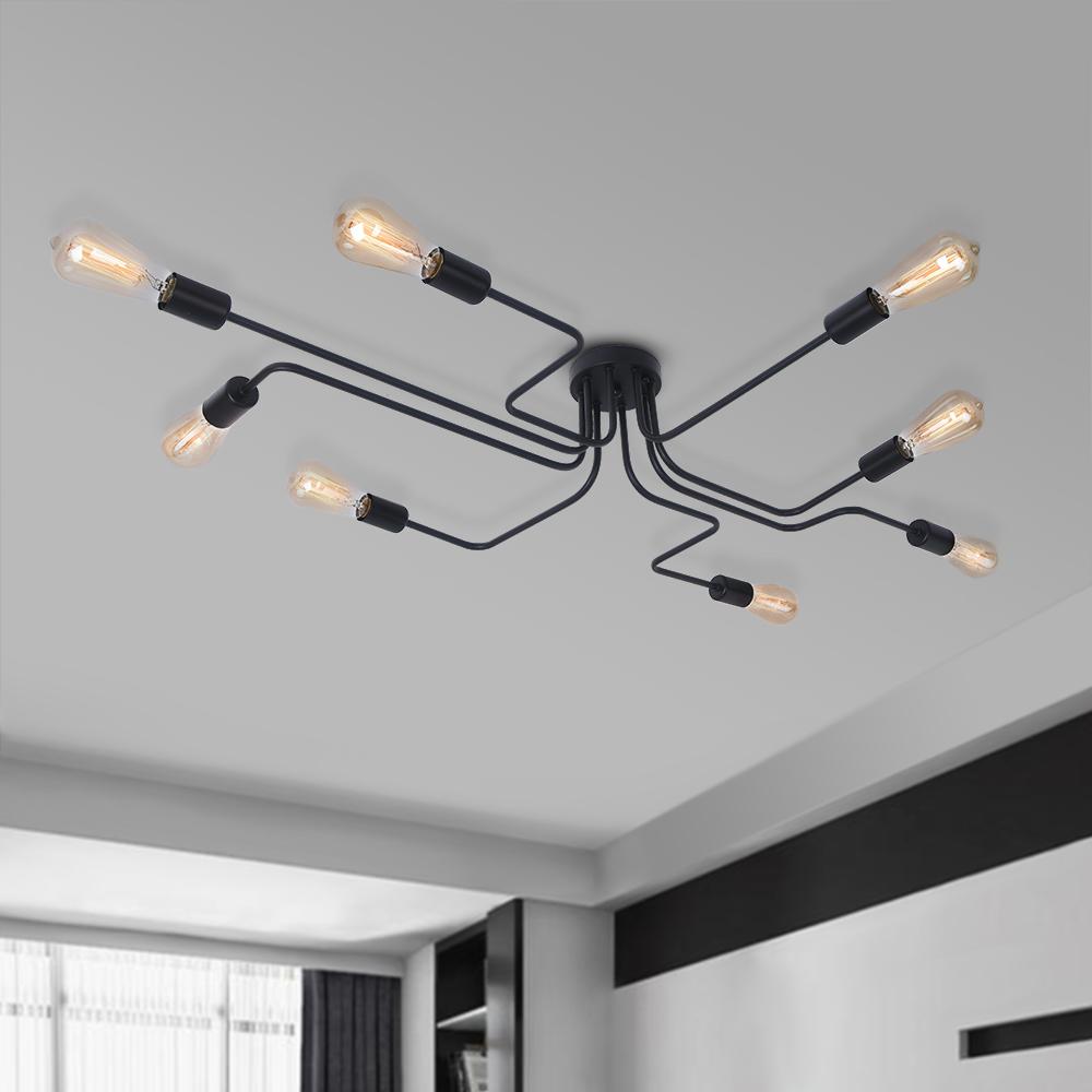 Täydellinen yhdistelmä nykyaikaista tyyliä ja vintage-aksenttia, tämä puolitasainen sputnik-valo houkuttelee ihmisiä rohkealla muotoilullaan. Tämä metallista valmistettu puoliksi uppoasennus venyttelee kahdeksan suorakulmaisesti kaarevaa vartta pyöreästä kuomusta kaikkiin suuntiin herkänä elektronisena tauluna. Jokaisen varren päässä on tavallinen lamppu (ei sisälly toimitukseen) jopa 60 W:iin asti, joka valaisee huonettasi runsaasti tehdastyylillä. Tarpeesi mukaan tämä teollisuuskattovalaisin on saatavilla näyttämään oikeanlaista valaistusta tilaan himmenninkytkimellä ja himmennettävillä lampuilla (molemmat eivät sisälly toimitukseen). Lisäksi tämä puoliksi upotettu sputnik-valaisin on yhteensopiva sekä tasaisen että kalteva katon kanssa, mikä laajentaa sen käyttökohteita. Tässä modernissa teollisessa, puoliksi upotettavassa sputnik-valaisimessa on 43,31 tuumaa (110 cm) pitkä x 6,30 tuumaa (16 cm) korkea x 4,72 tuumaa (12 cm) leveä, ja se sopii yleisiin sisätiloihin, kuten olohuoneeseen, ruokailutilaan, käytävään, baari, klubi ja ravintola.