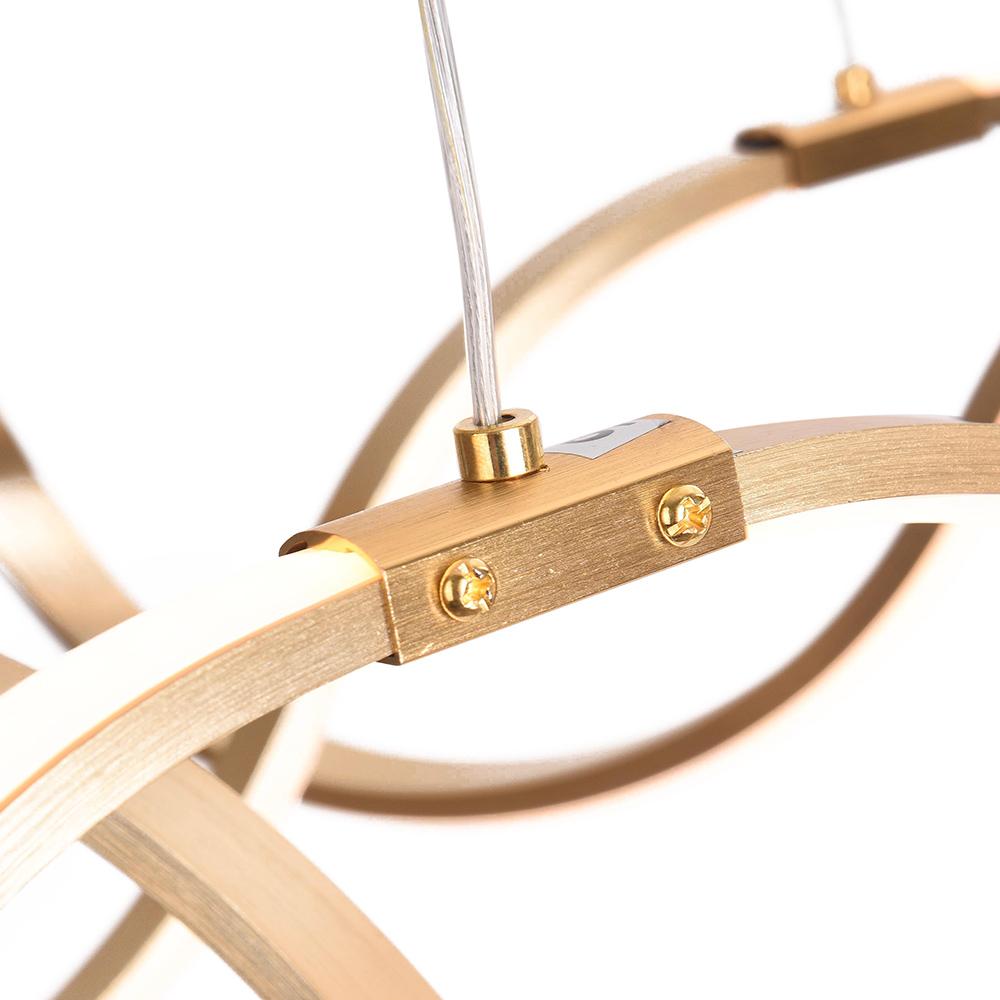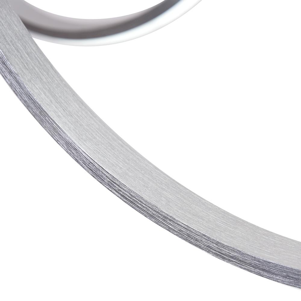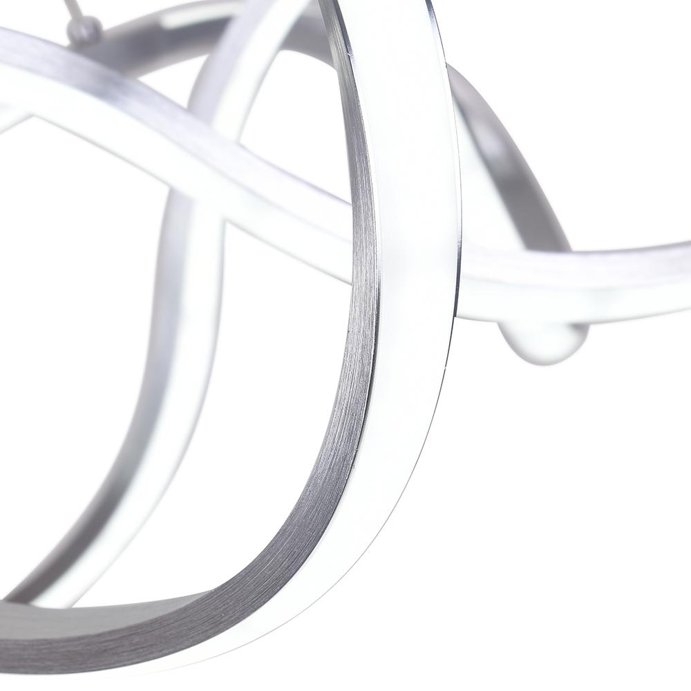Herkkä ja dynaaminen kappale, kierrettävä LED-nauhakruunumme luo draamaa ja taiteellisuutta moderniin ja nykyaikaiseen huoneeseesi. Tämä upea nauhakruunu esittelee kiertyvän ja pyörivän nauhariipusen himmeällä akryylihajottimella, kuten kelluva Mobius-nauha. Sisäänrakennettu integroitu LED-moduuli valaisee tilaasi tehokkaasti. Tämä moderni LED-kattokruunu sisältää kaukosäätimen, ja siinä on himmennettävä toiminto värilämpötilan säätämiseksi ylös ja alas. Tämä himmennettävä LED-kattokruunu on ripustettu kuudella kaapelilla ja sopivalla sylinterimäisellä kuomulla, ja se on säädettävissä eri pituuksiin. Kokeile sijoittaa tämä himmennettävä LED-kattokruunu keittiön saarelle, ruokasaliin, olohuoneeseen tai aulaan yllättääksesi ystäväsi ja vieraasi.Detail