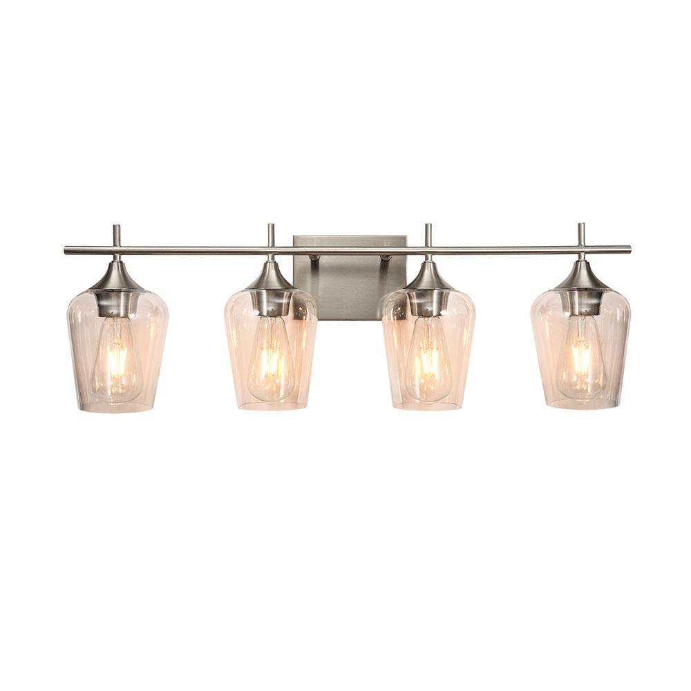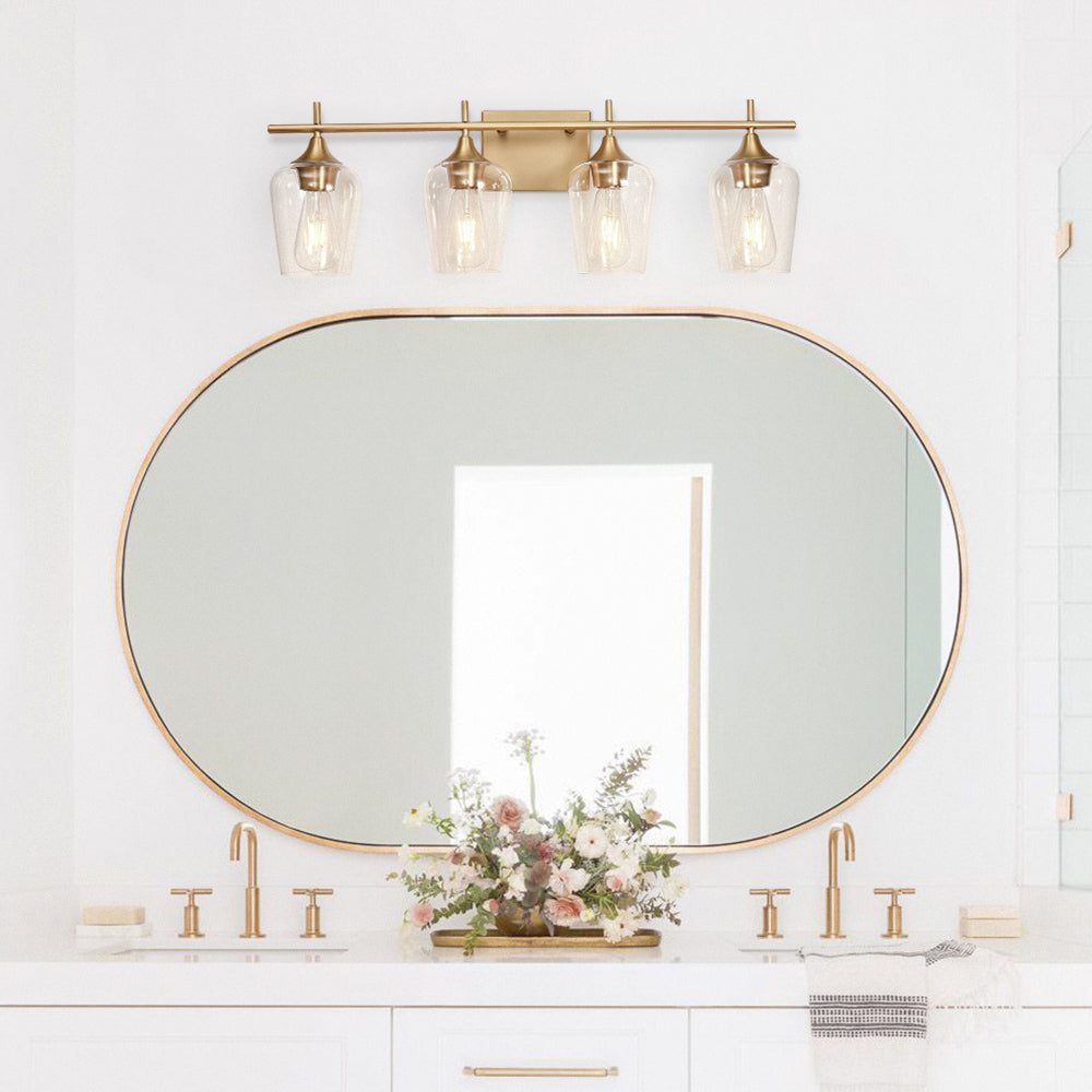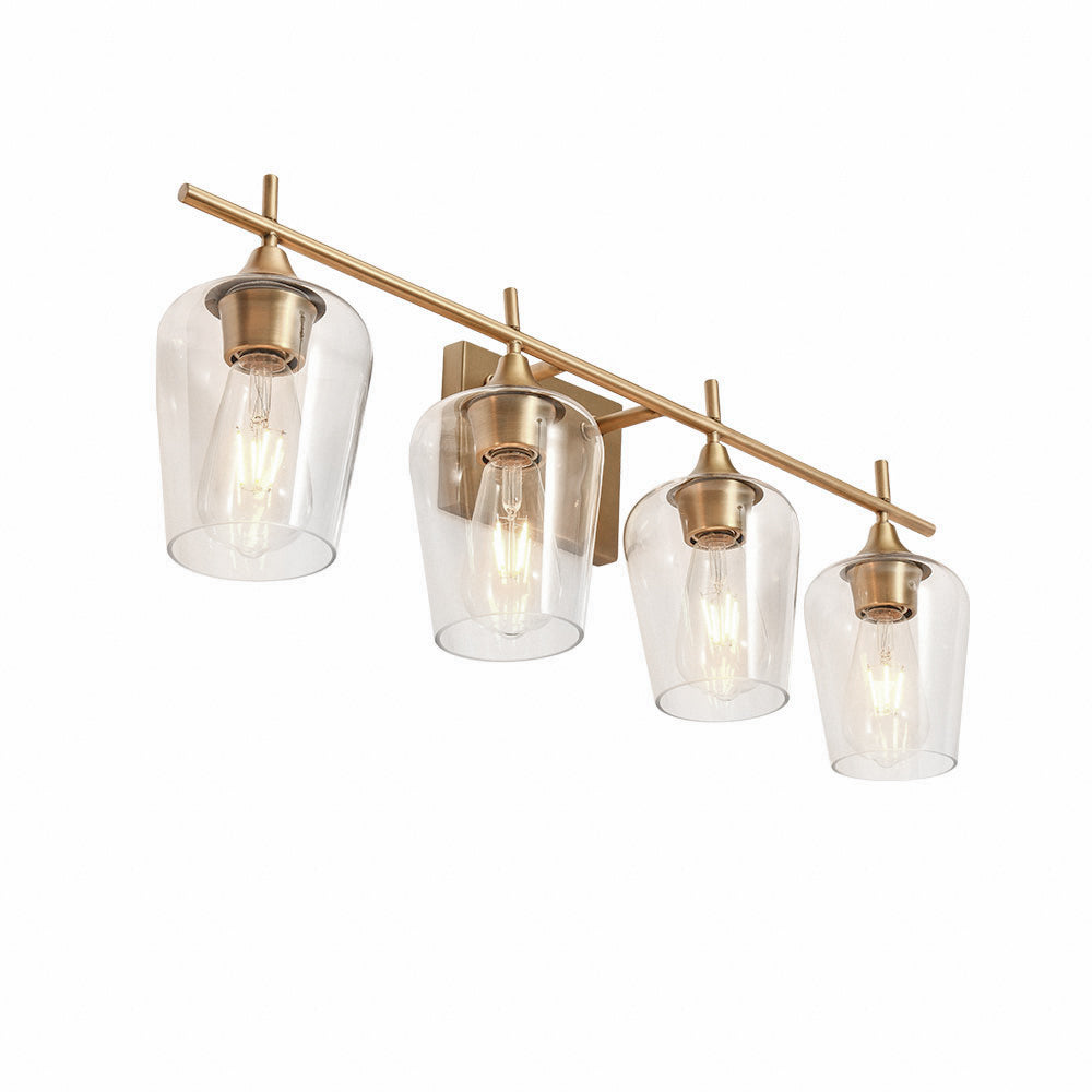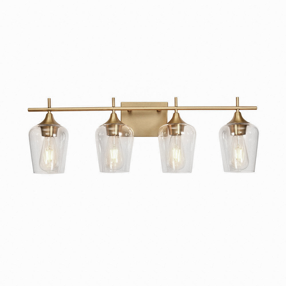 Näyttää neljältä tyylikkäältä viinilasilta, jotka istuvat vaakasuoran tangon päällä, ja tämä 4-valaisin valaisee seinäalueesi upeasti. Tämä lasiseinävalaisin, johon mahtuu neljä keskikokoista E26/E27-polttimoa (ei sisälly toimitukseen), lisää kirkkautta, mikä hyödyttää meikkiä, pukemista tai muuta jokapäiväistä elämää. Mukavuuden vuoksi tämä meikkivalaisin on saatavana joko ylä- tai alasvalaistukseen asennettavaksi. Tämä upean kokoinen (73 cm x 24 cm x 15 cm) tämä moderni 4-luvun puolivälin turhamaisuusvalaisin on kaunis ja hyödyllinen lisä isoon pukuhuoneeseen, käytävään, hotellin käytävään tai vierashuoneeseen. Hanki ILMAINEN toimitus tällä klassisella lasiseinävalaisimella nyt.Detail