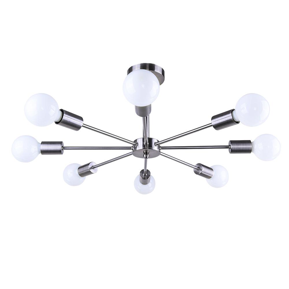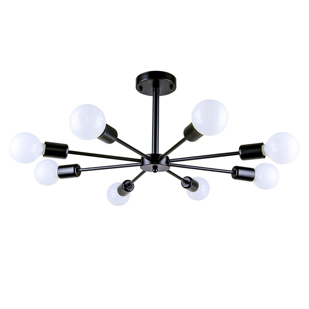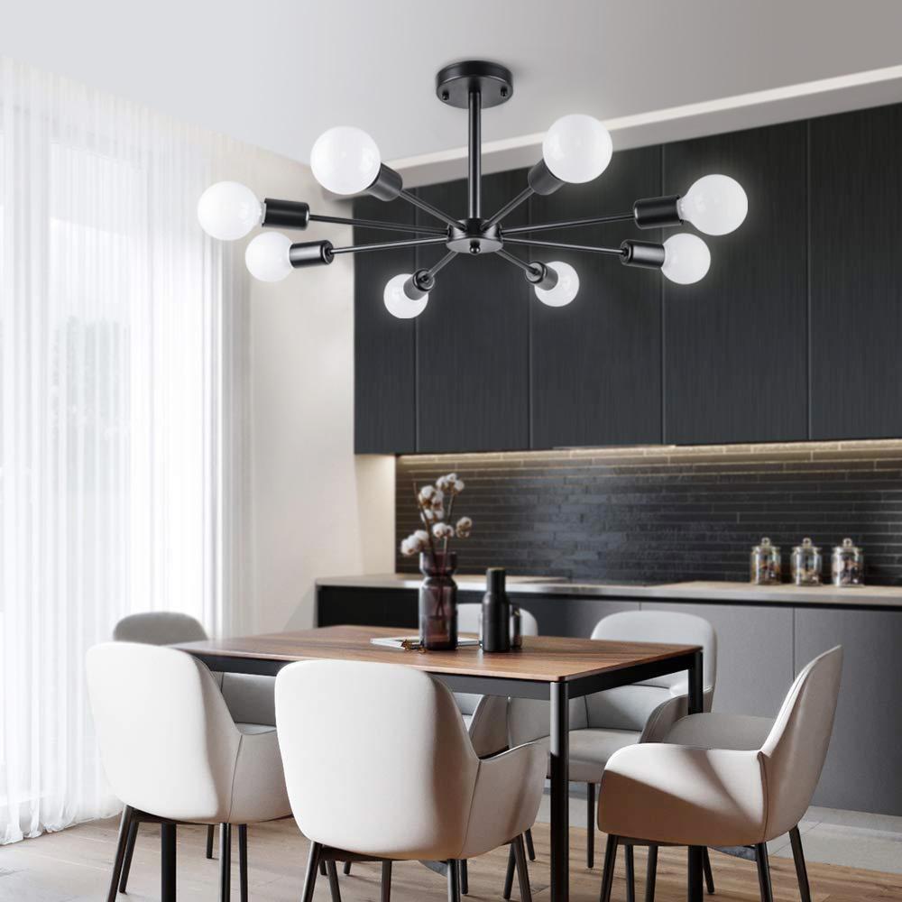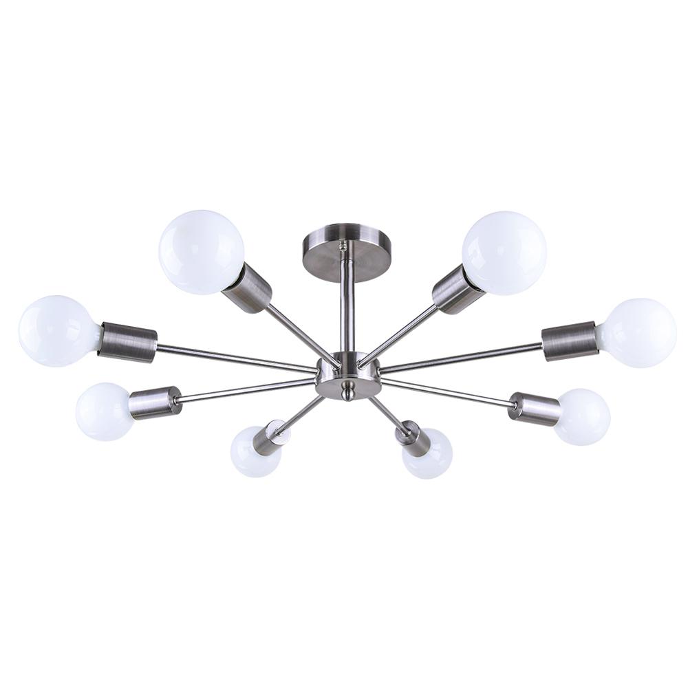 A modern twist with the vintage accent comes in our 8-light mid-century sputnik chandelier semi flush that creates an artful point to your arrangements. Crafted by metal in matching finish, this semi flush chandelier features a round canopy, a slender down-rod, and eight arms spreading from the cylindrical center to all quarters. With eight E26/E27 standard bulbs (not included) perch on the terminal part of arms, this modern chandelier lighting casts a boost of warm glow to your interior. If needed, you could adjust the lighting as you wish with a dimmer kit. For versatility, this modern mid-century sputnik chandelier is available to customize the pole’s lengths according to the ceiling height. In a size of 7.09 in (18 cm)high x 23.6 in (60 cm)wide, this modern chandelier lighting is an ideal pick to make a strong statement for your living room, dining room, bedroom, foyer, and entryway.