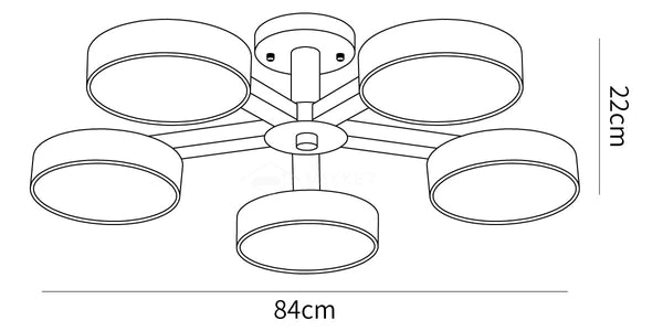 5 päätä Koko: Halkaisija 84cm x K 22cm / ∅ 33,1" x K 8,7" (teho ~ 45 W)