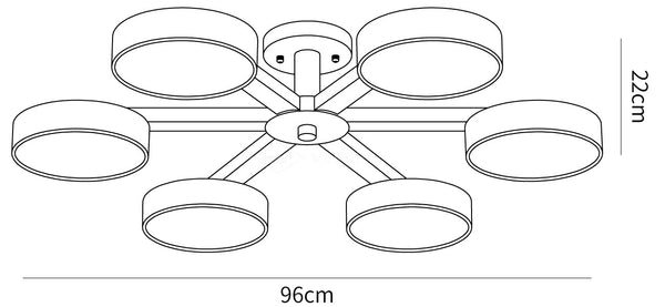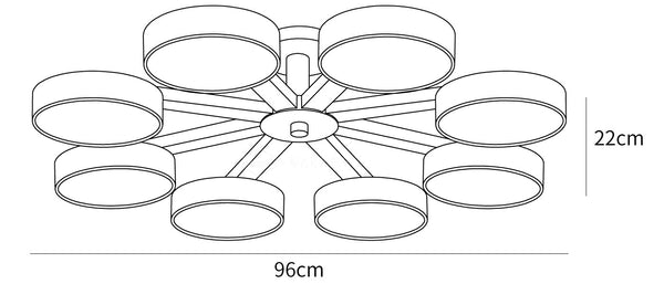 8 päät Koko: Halkaisija 96cm x K 22cm / ∅____106_1096_109 7,8″ x H 8,7" (teho ~ 72 W)