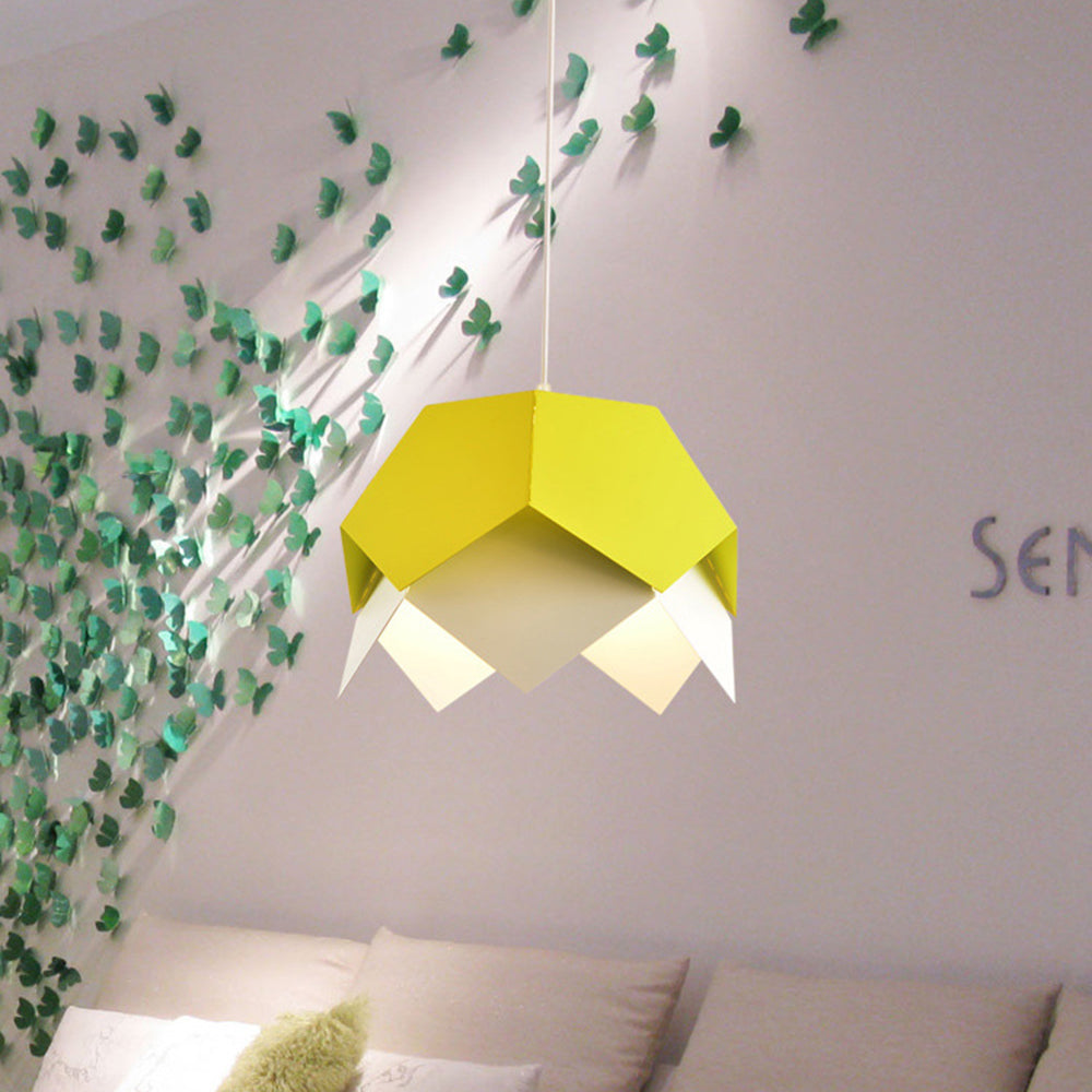 Tämä riippuvalaisin, joka on valmistettu huolella yksityiskohtiin, on muodon ja toiminnan silmiinpistävä yhdistelmä. Sen teollisuusvaikutteinen rautarakenne varmistaa kestävyyden ja vakauden, kun taas ainutlaatuinen taitettavan paperin värillinen muotoilu lisää taiteellista kosketusta, joka vangitsee mielikuvituksen.