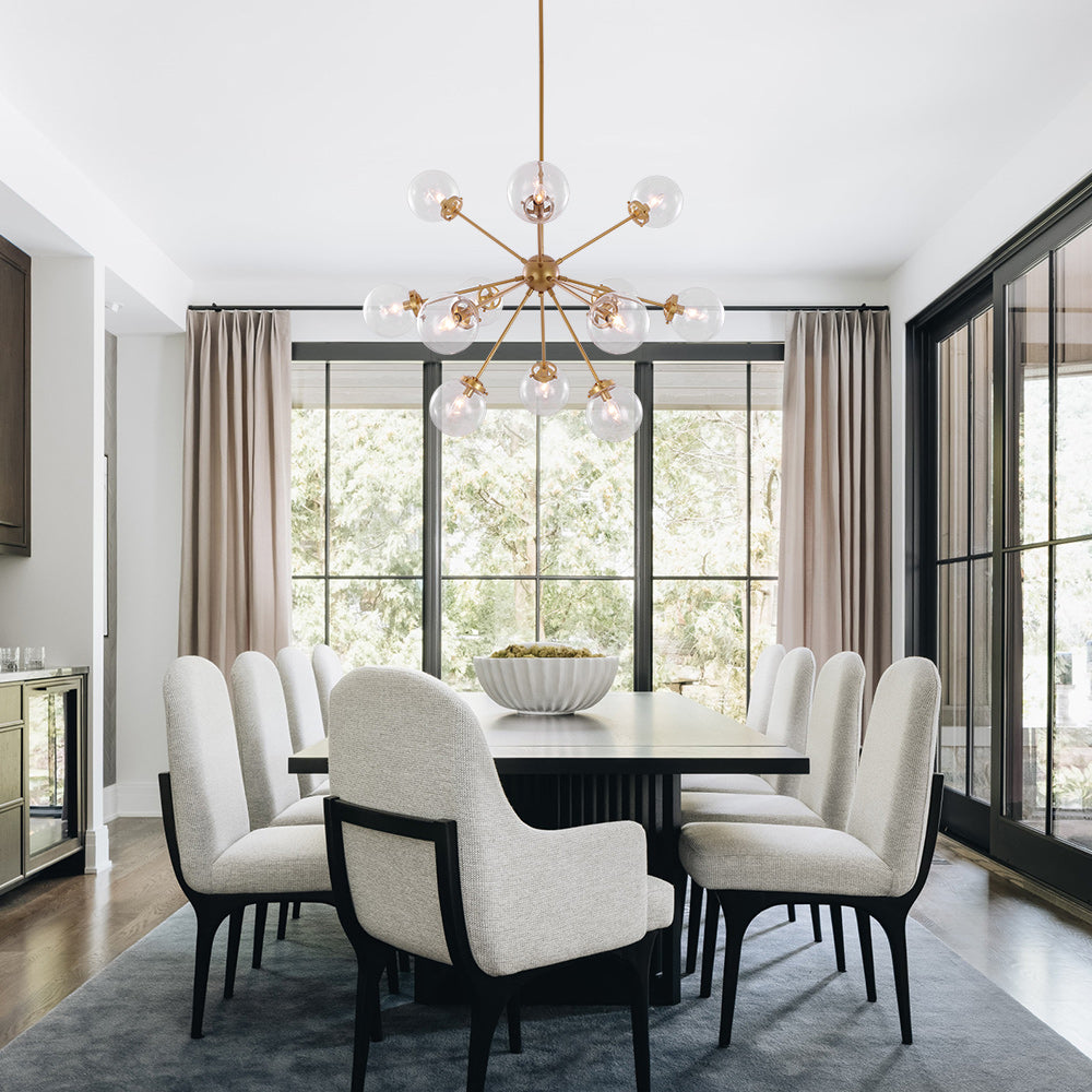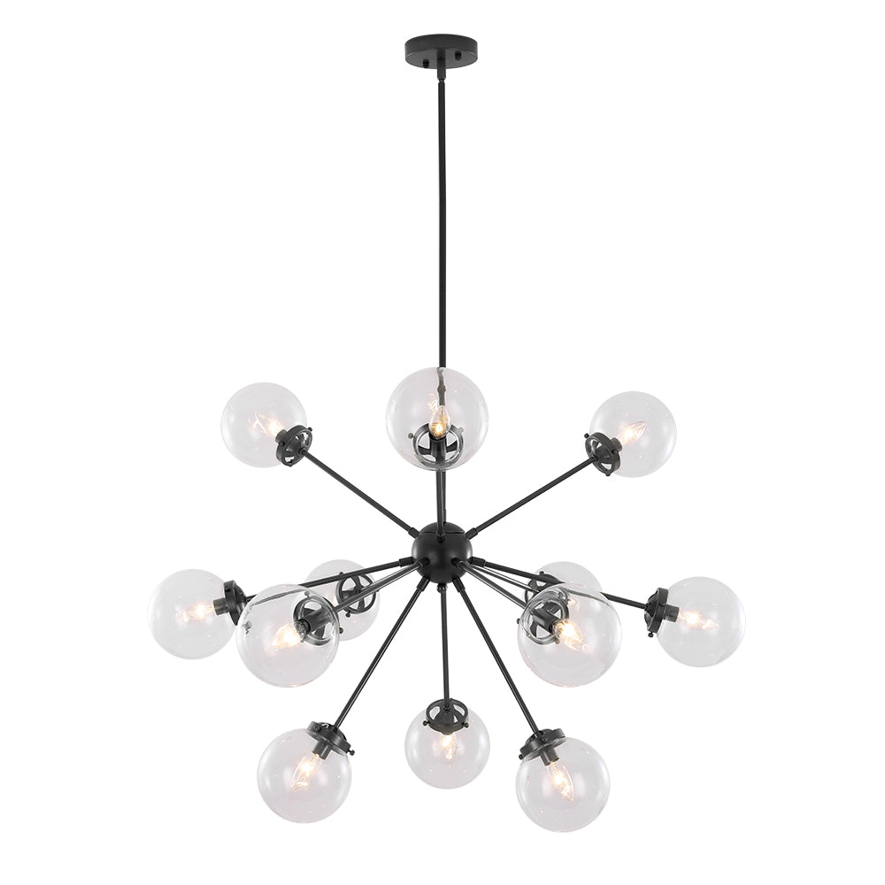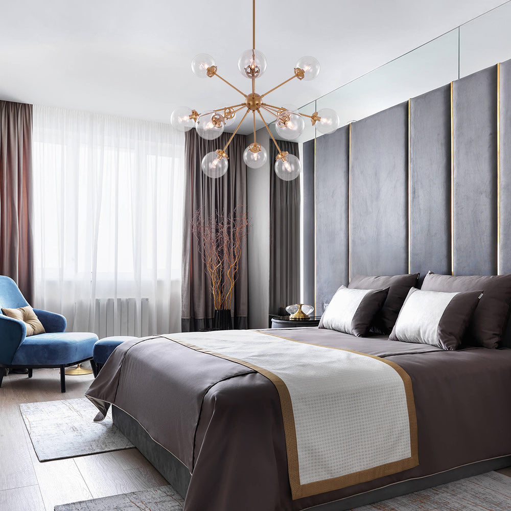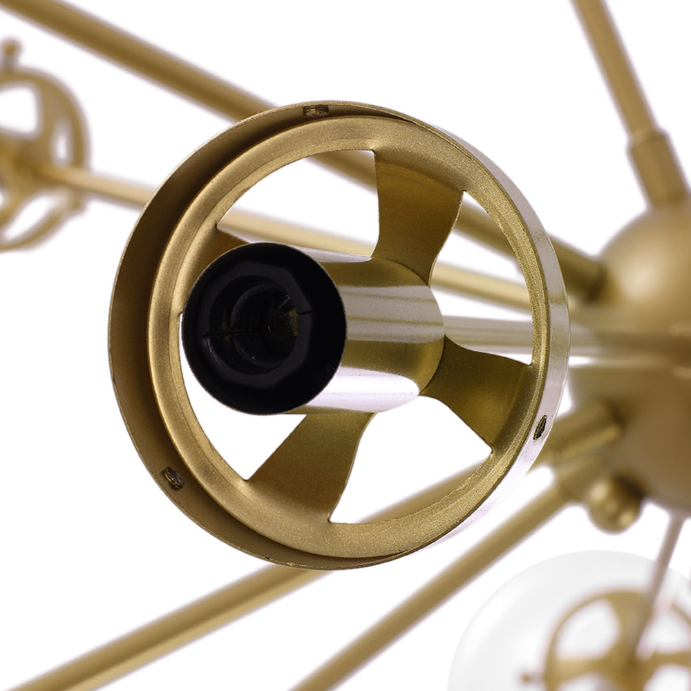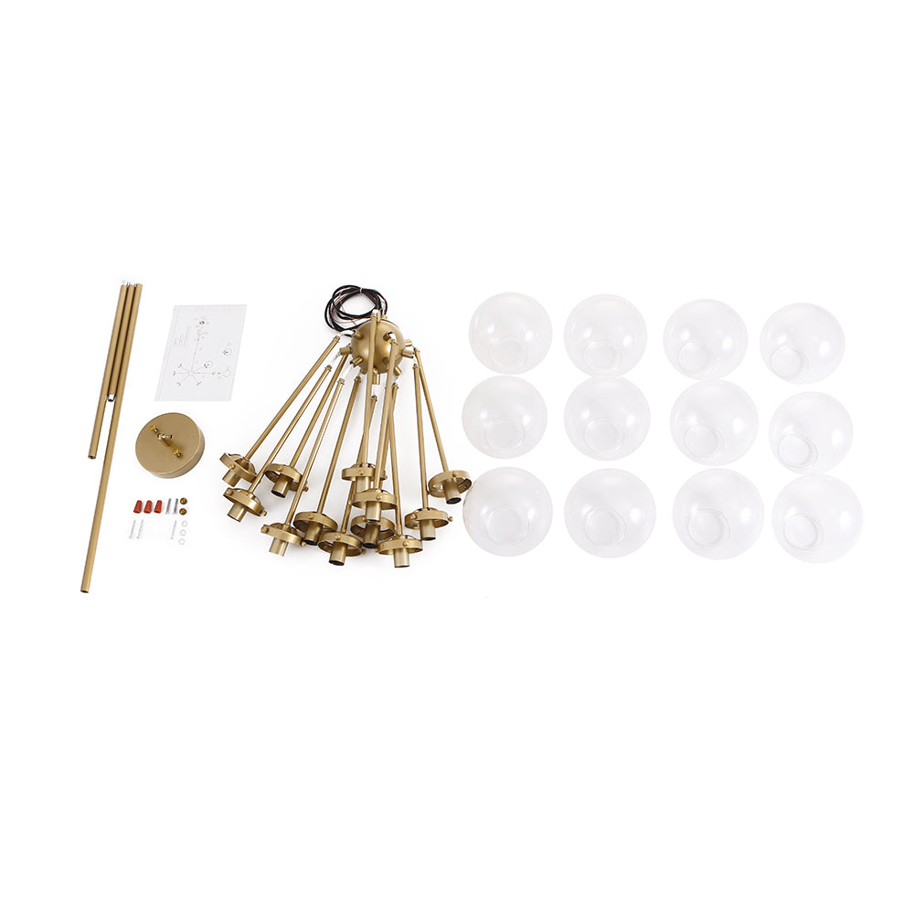 Tämä moderni pallomainen kattokruunu tarjoaa energisen sputnik-siluetin, jossa on pallomaisia sävyjä, jotka on rakennettu kirkkaasta lasista, joka antaa runsaasti valaistusta. Mattamusta tai tyylikäs messinkiviimeistely lisää upean korostuksen tähän lasimaapallon kattokruunuun. Lisäksi tämä lasimaallinen kattokruunu on saatavana himmentimellä ja himmennettävillä polttimoilla (molemmat eivät sisälly) oikean määrän valaistukseen aamusta iltaan. Säädettävällä sovittimella ja sovittimella ripustettu pallokattokruunu on yhteensopiva sekä tasaisen että viistokaton kanssa kattokorkeutesi mukaan. Lisää dramaattisuutta olohuoneeseen, ruokasaliin, eteiseen, eteiseen, hotelliin ja ravintolaan tällä pallomaisella 12-valoisella sputnik-kattokruunulla.