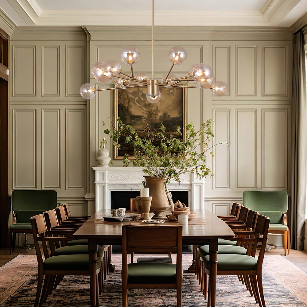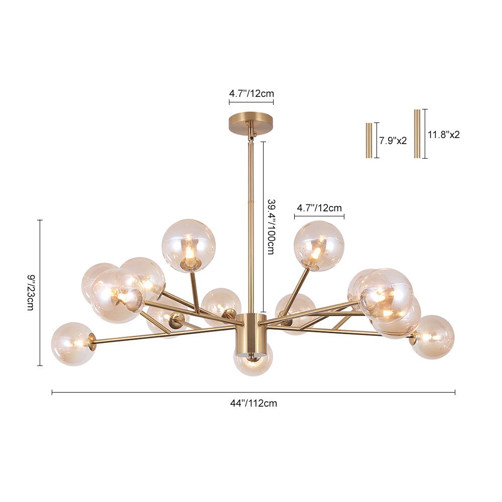 Moderni sputnik-kattokruunumme sisustaa olohuoneesi, ruokailuhuoneen, keittiösaarekkeen, eteisen ja eteisen moderniin klassiseen tyyliin oudolla haarautuvalla kuplasuunnittelulla. Tässä kestävästä metallista valmistetussa 15 kevyessä haarautuvassa kuplakruunussa on yhteensopiva pyöreä katos, hoikka alasauva ja sylinterimäinen keskiosa, joka hajottaa useita oksia kaikkiin suuntiin. Jokaisen haaran päätä koristaa maapallon lasivarjostin. Tässä 15 G9-lamppua (ei sisälly toimitukseen) sallivassa modernissa Sputnik-haaroittuvassa kuplakruunussa on runsaasti viehättävää valaistusta savustettujen tai ruskeiden lasivarjostimien avulla. Saatavana himmentimellä ja himmennettävillä polttimoilla (molemmat eivät sisälly toimitukseen), tämä maapallokattokruunu säätää oikean valaistuksen haluamallasi tavalla. Tämä 128 cm (50,39 tuumaa) leveä 15-kevyinen haarautuva kuplakruunu , jossa on näyttävä muotoilu, luo taiteellisen keskipisteen sisustukseesi.Tiedot