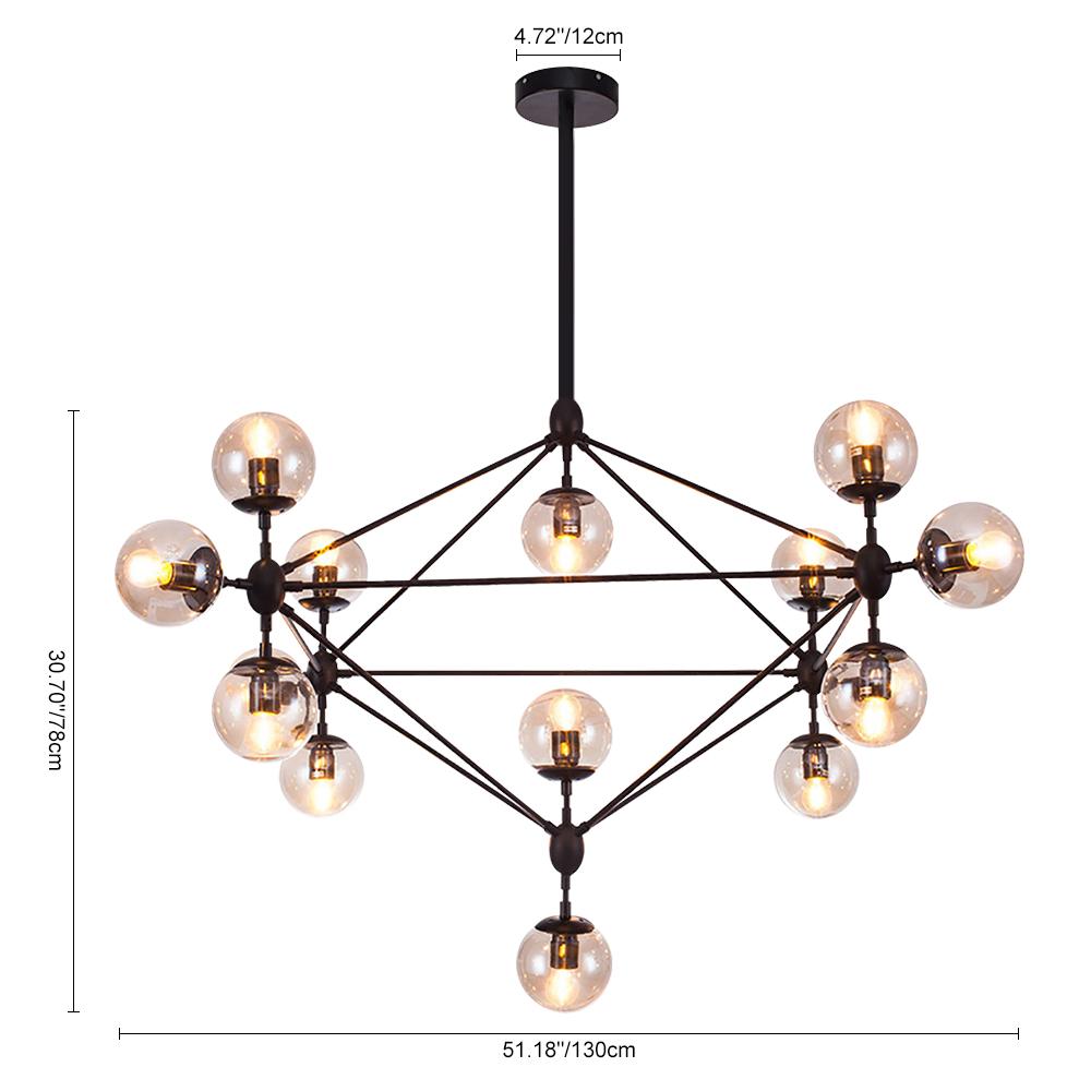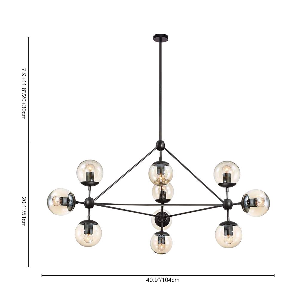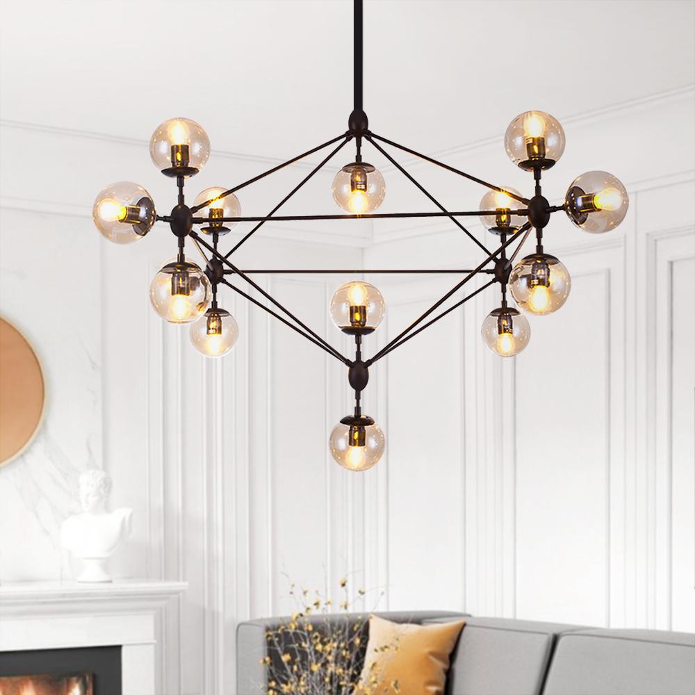 Kymmenen/viisitoista valoa • Kirkkaat lasivarjostimet • Musta viimeistely • E26/E27 Keskikantaiset polttimot (ei sisälly) • Kiinteä • UL-listattu/CE-listattu