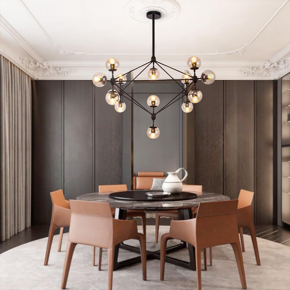 Hienostunut geometrinen muotoilu tekee tästä kirkkaasta lasista valmistetun kattokruunun modernin taideteoksen. Tämä kattokruunu tulee avoimessa geometrisessa kehyksessä 3 tai 4 sivulla kolmiulotteisena timanttirakenteena, joka on valmistettu useista ohuista tangoista. Kymmenen tai viisitoista kirkasta lasisävyä korostaa ilmettä, ja tuloksena on erottuva muotoilu, joka huvittaa silmiä. Yhteensopiva E26/E27 keskikantaisten polttimoiden kanssa (ei sisälly), tämä kirkas lasikattokruunu valaisee järjestelyäsi upean ympäristön. Säädettävä ripustustanko varmistaa, että tämä geometrinen kattokruunu sopii erinomaisesti eri kattokorkeuksille. Tämä moderni geometrinen kattokruunu ei ole täydellinen vain olohuoneeseen, ruokasaliin, makuuhuoneeseen ja eteiseen, vaan se voi myös luoda näyttävän paikan kaupallisille alueille, kuten hotellille, studiolle, gallerialle, salongille ja ravintolalle.