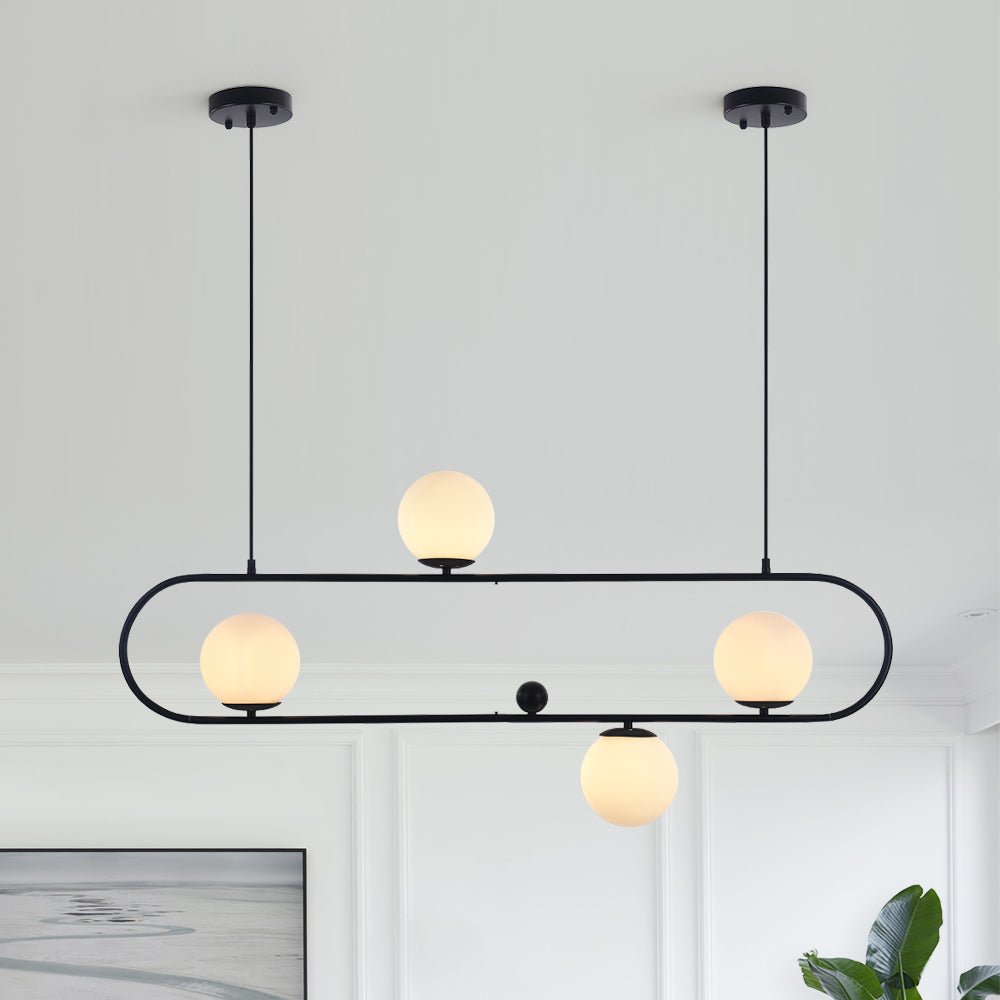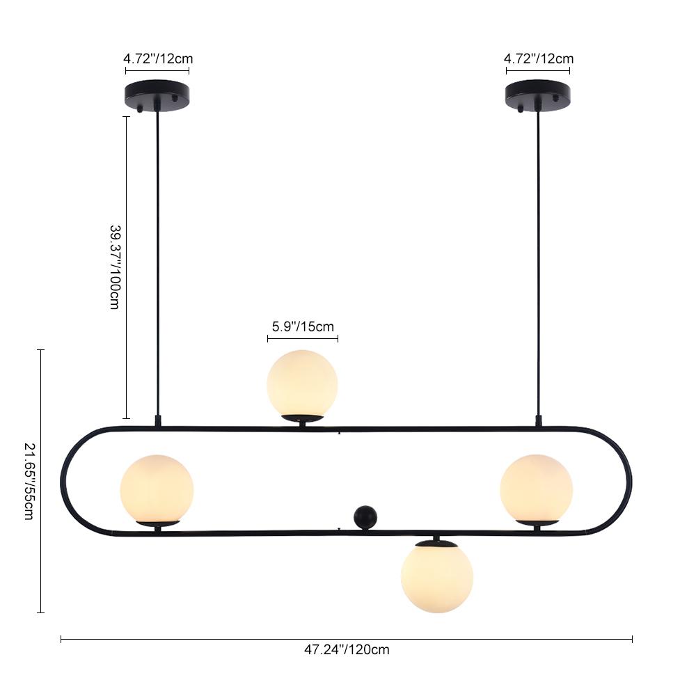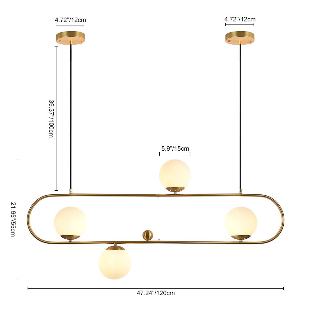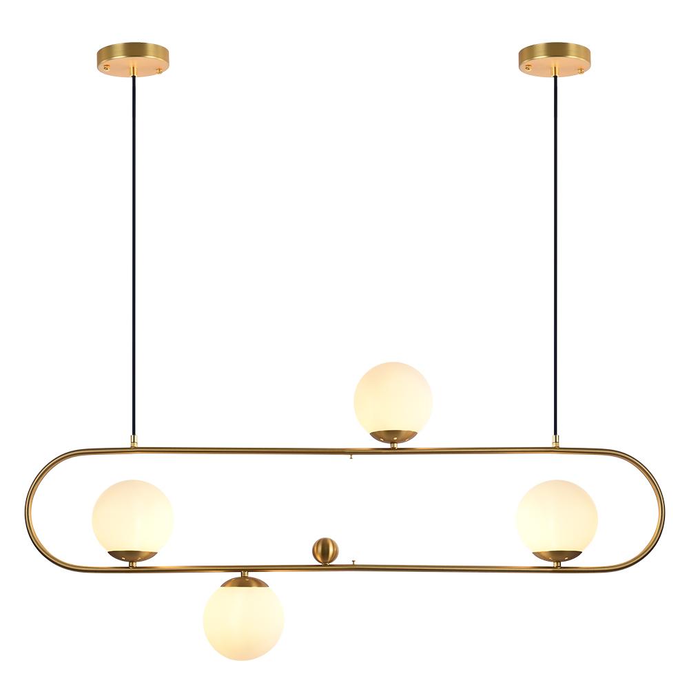 Lineaarinen saarekekruunumme kiinnittää huomion erottuvalla muotoilullaan tuo miellyttävän kirkkauden ja uudenlaisen nykyaikaisen tyylin tilaan. Tässä 4-valoisessa lasipallokruunussa on tyylikäs soikea messinki-/musta viimeistelyrengaskehys, joka on ripustettu kahdella metallikaapelilla, joiden katokset ovat säädettävissä mieltymystesi mukaan. Metallirungossa on neljä maapalloa, joissa on G9-polttimot (ei sisälly toimitukseen), joten saaririippuvalaisin valaisee huoneen viihtyisään tunnelmaan opaalilasin varjostimen läpi. Koska tämä kuplasaari-riippuvalaisin on yhteensopiva kaltevaan kattoon, on olemassa laaja valikoima sovelluksia erilaisiin koriste-olosuhteisiin. Tämä saarikruunu ei ole vain yksinkertainen valotyökalu, vaan se on myös lumoava lisävaruste, joka parantaa huoneesi makua, kuten olohuoneessa, ruokasalissa, keittiössä, baarissa ja ravintolassa.Tiedot