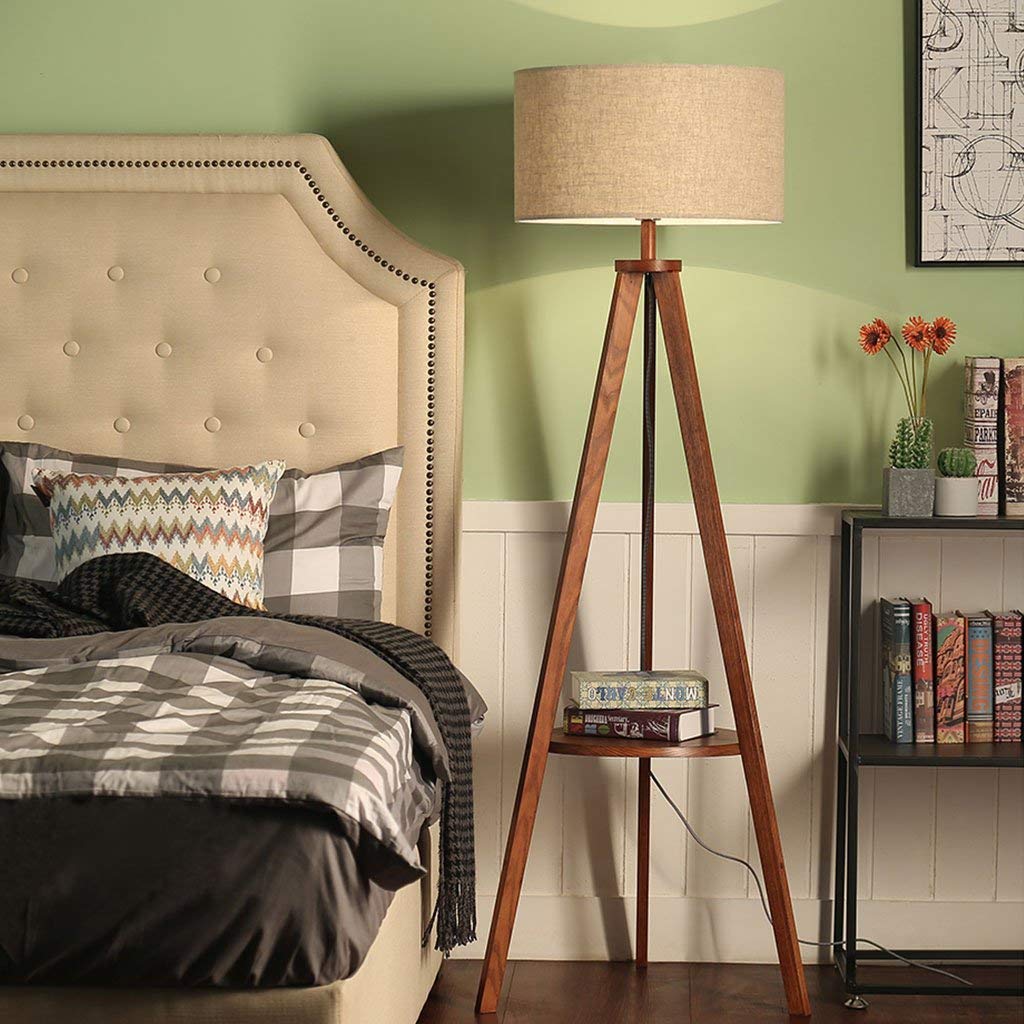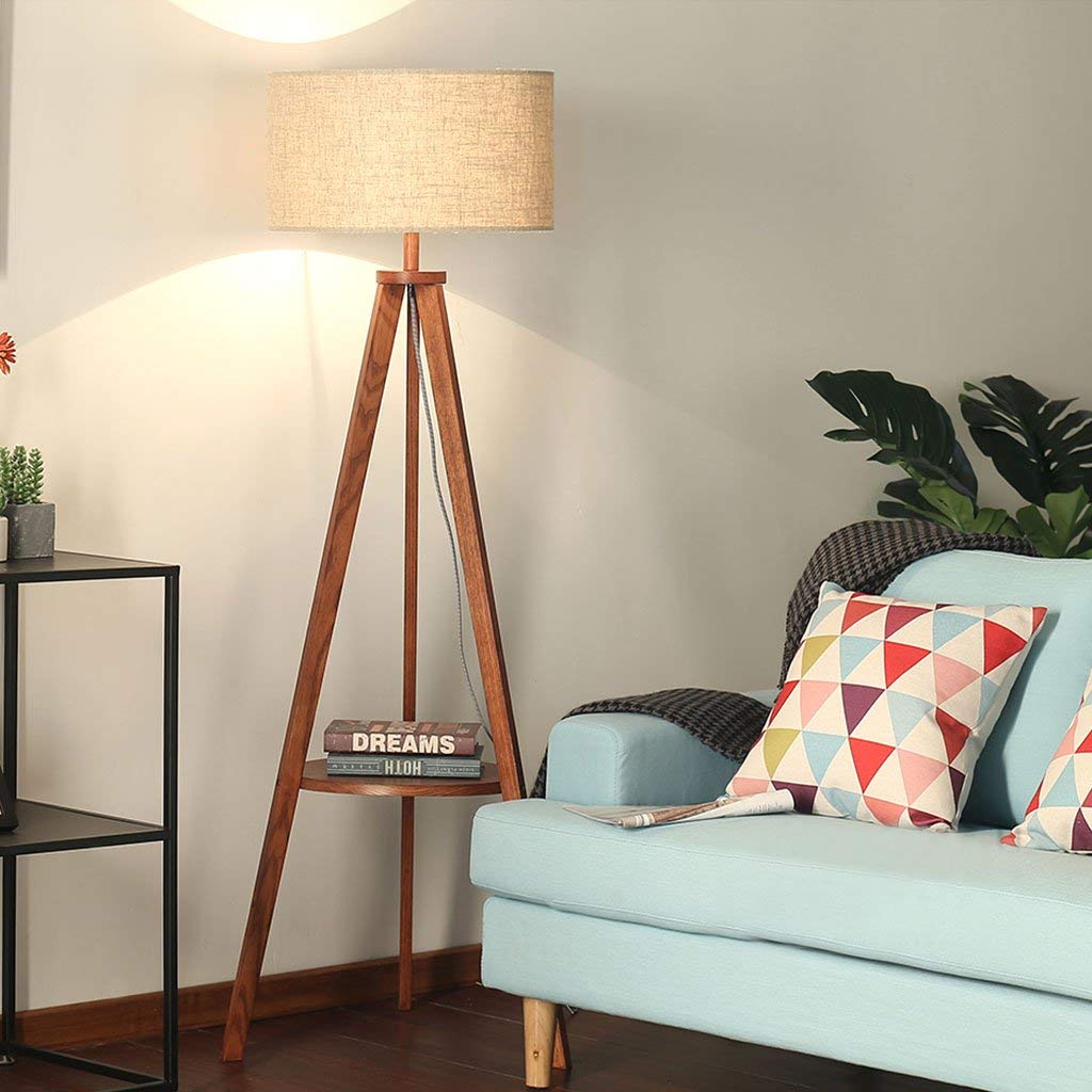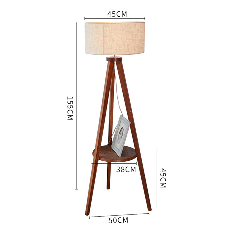 Moderni kolmijalkainen lattiavalaisin Pystysuuntainen puinen valaisin