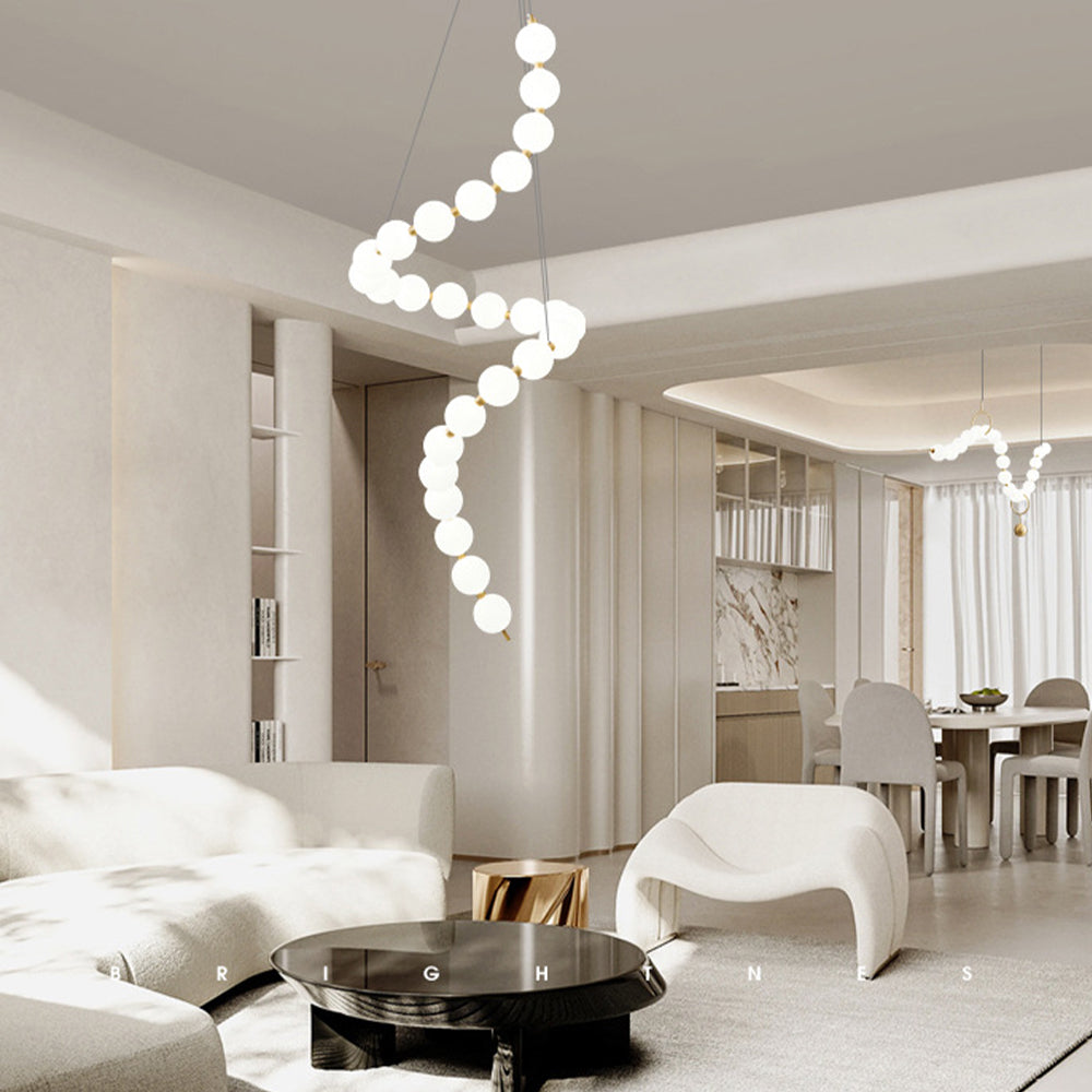 Moderni White Ball pitkä LED-portaikruunu olohuoneeseen