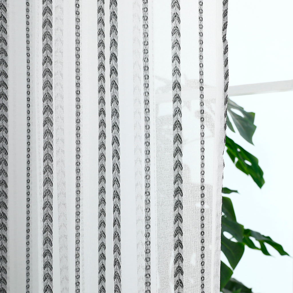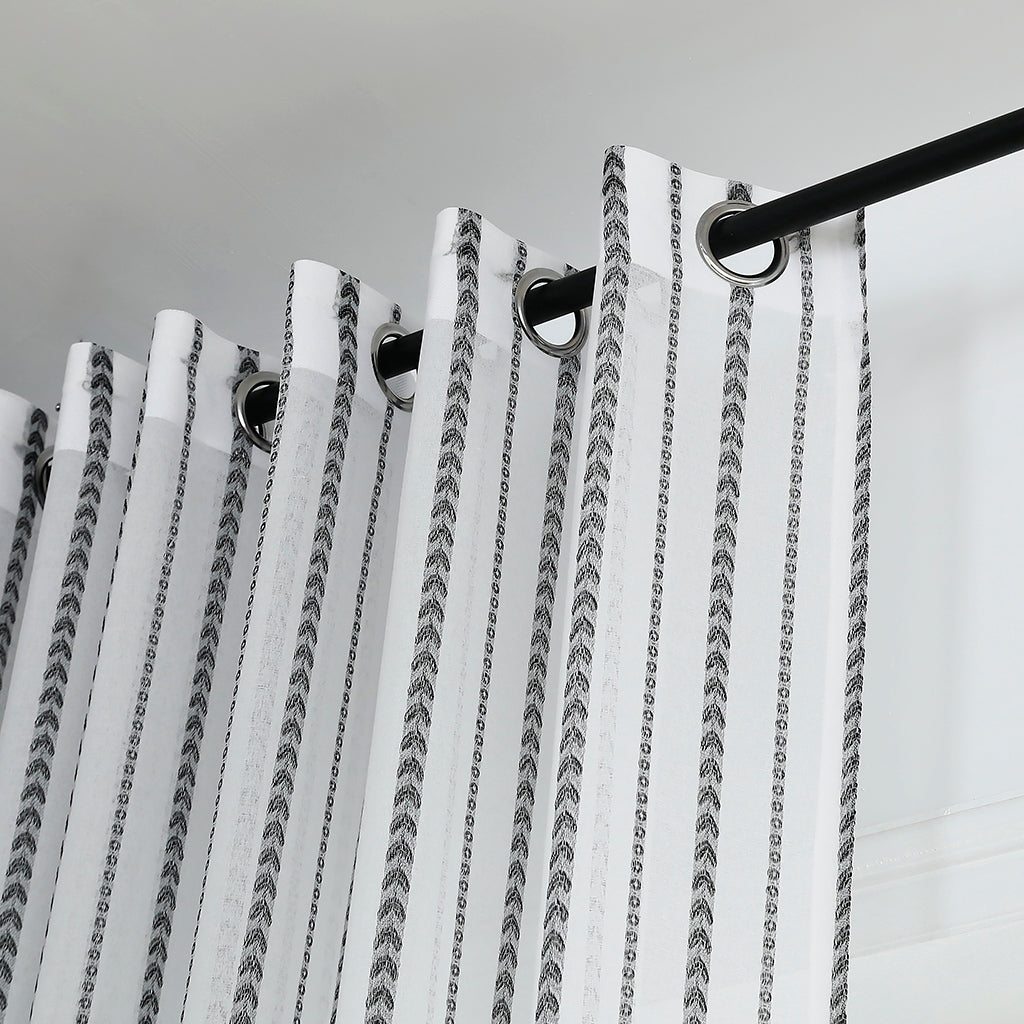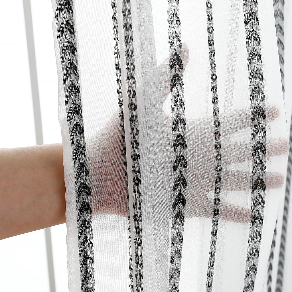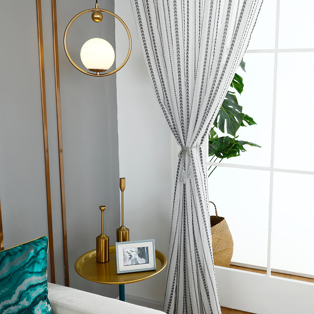 Modernit valkoiset läpinäkyvät verhot, mustat rakkausraidat, lastenhuone