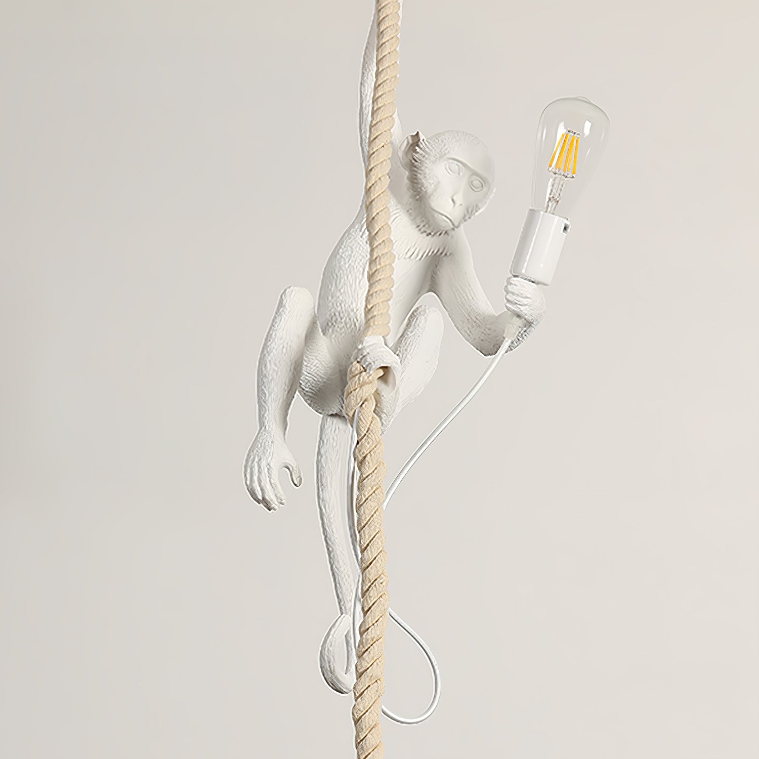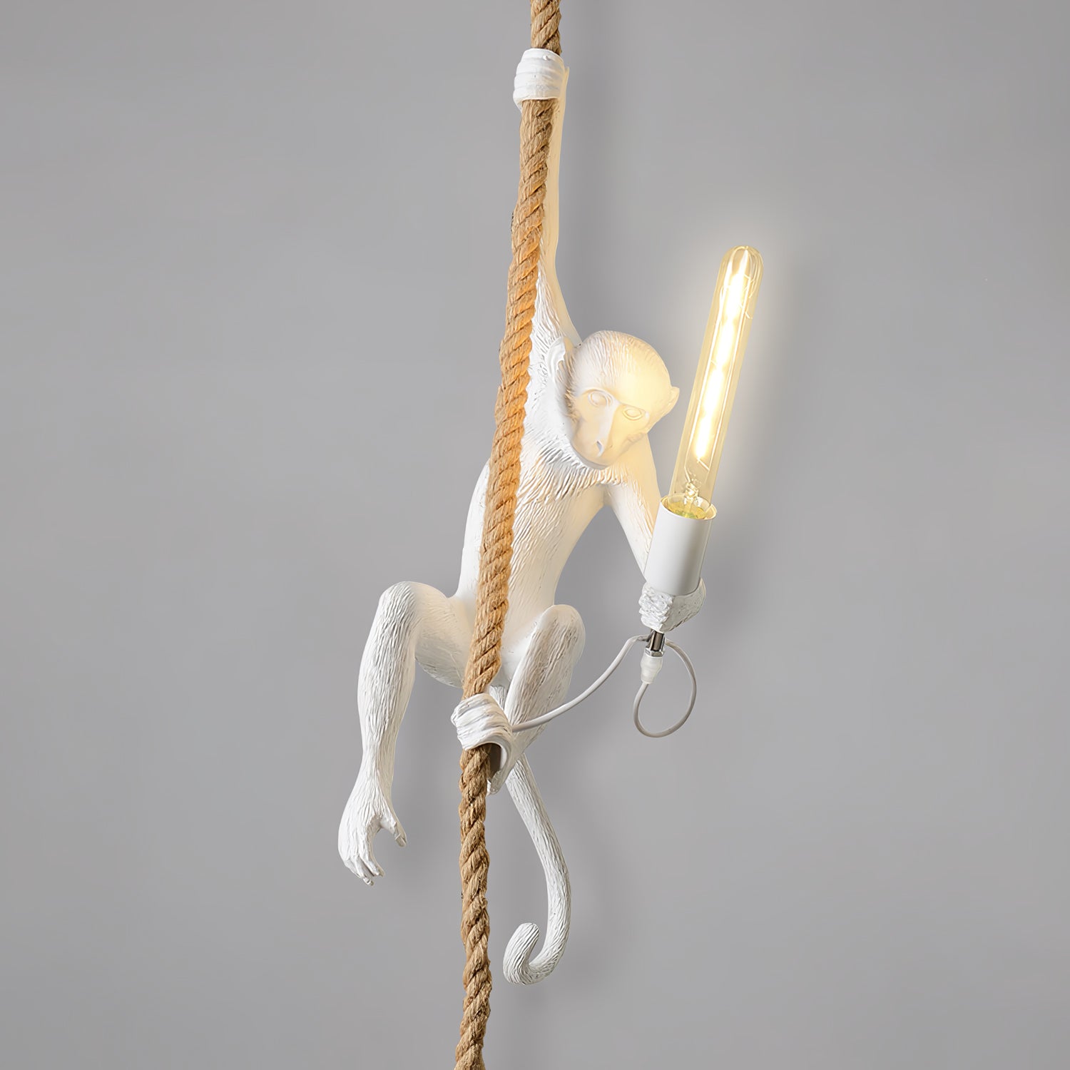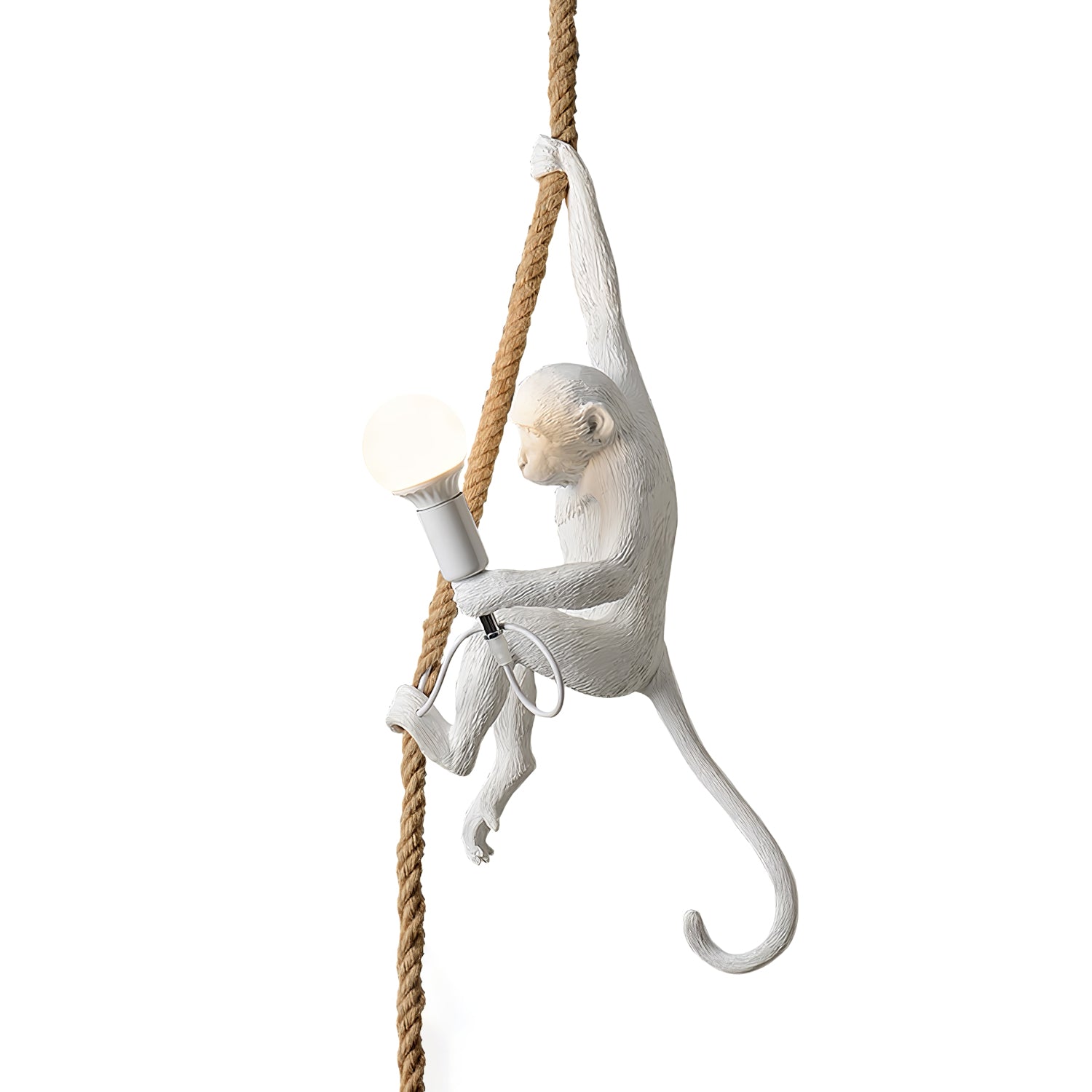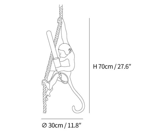 Tuo villi sisätiloihin Monkey-riippuvalaisimen avulla. Tässä kiiltävästä hartsista valmistetussa riippuvalaisimessa on ilkikurinen apina, joka on täydellinen luomaan tunnelmallista tunnelmaa mihin tahansa huoneeseen. Realistisen muotoilunsa ansiosta tämä valaisin antaa tilaan villin ja luonnollisen tunnelman.
