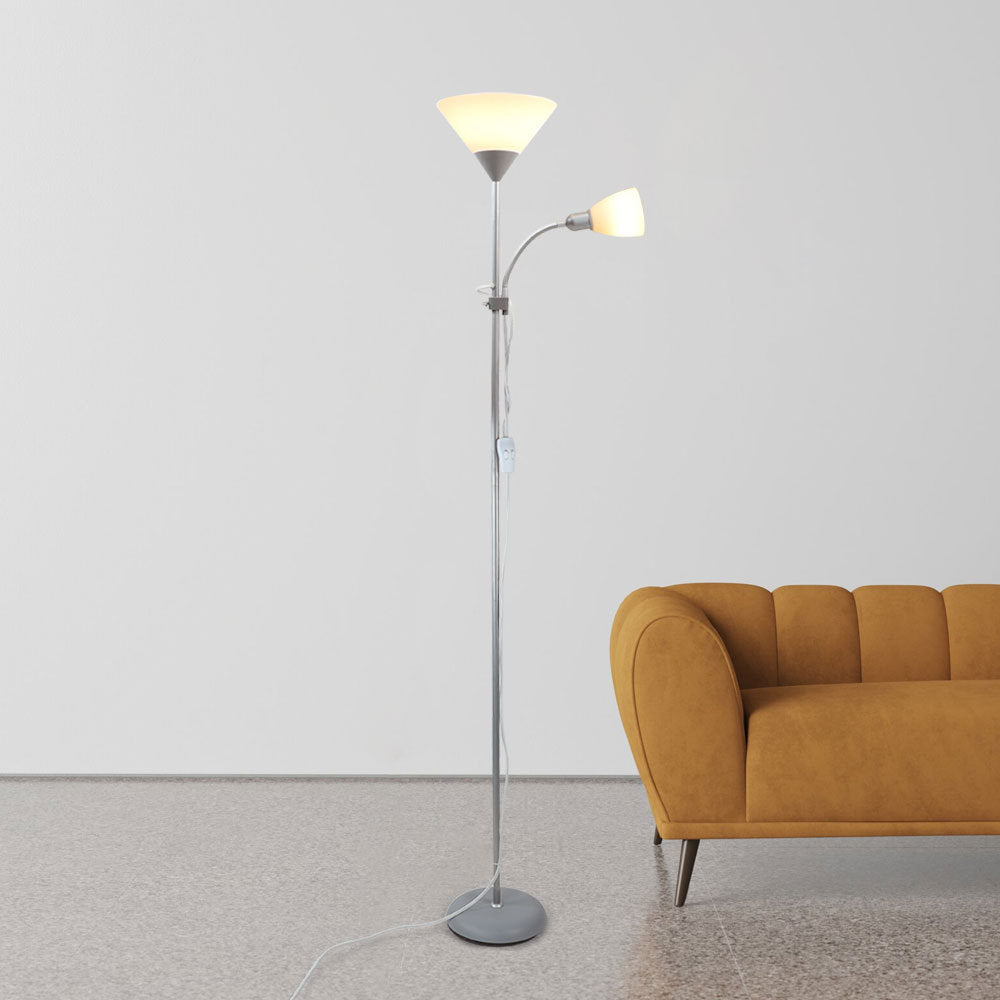 DLLT LED-lattiavalaisin lukuvaloilla, moderni seisova pylväsvalo, taskulamppu ja hanhenkaula vapaasti seisova valaisin olohuoneeseen, makuuhuoneeseen, toimistoon (hopea)