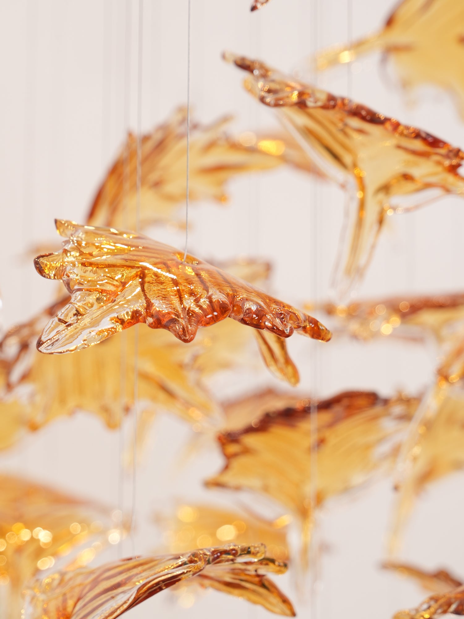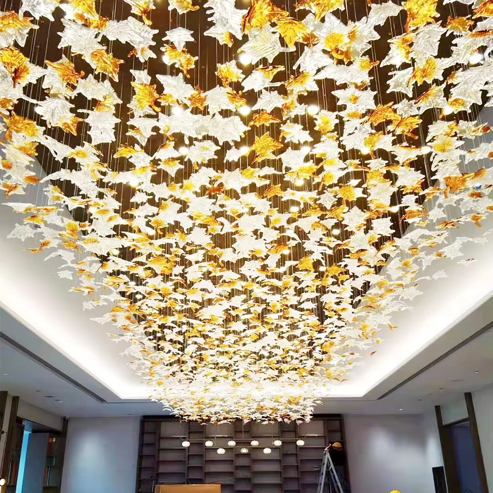 Tämä upea monivärinen Crystal Maple Leaf -kattokruunu on varmasti minkä tahansa huoneen keskipiste. Siinä on ainutlaatuinen kristallivaahteranlehtimuotoilu monivärisellä kristallilasilla, mikä mahdollistaa mukautetun tilauksen. Lisää ripaus eleganssia kotiisi tällä kauniilla ja monimutkaisella kattokruunulla.