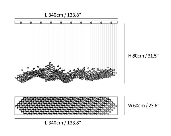 Koko: Halkaisija 100 cm x K 250 cm / ∅ 39,4" x K 98,4" Voimme muokata eri kokoja, värejä ja muotoja ja tukea räätälöityjä piirustuksia. Tiedot Materiaali: Metalli, Lasi. Valonlähde: Integroitu LED (LED-valot on täysin sisäänrakennettu valaisimeen, eikä niitä voi vaihtaa). Kelvin-alue: lämmin valo (3000K), neutraali valo (4000K), viileä valo (6000K). Jännite: AC 110-240V Runkopinnat: kirkas, keltainen, keltainen, punainen, vihreä, sininen jne. Kosteudenkestävyys: IP 20 Kosteusluokitus käytettäväksi kylpyhuoneissa, keittiöissä ja katetuissa ulkotiloissa. Ympäristö: Sisätiloissa Johdot: kiinteä. Ohjaus: Yhteensopiva yleisten painokytkimien kanssa (ei sisälly). 59″ Säädettävä riippukorkeuskaapeli, jota voidaan pidentää tarpeen mukaan. Certification: UL, ETL ja CE, SAA luettelossa.