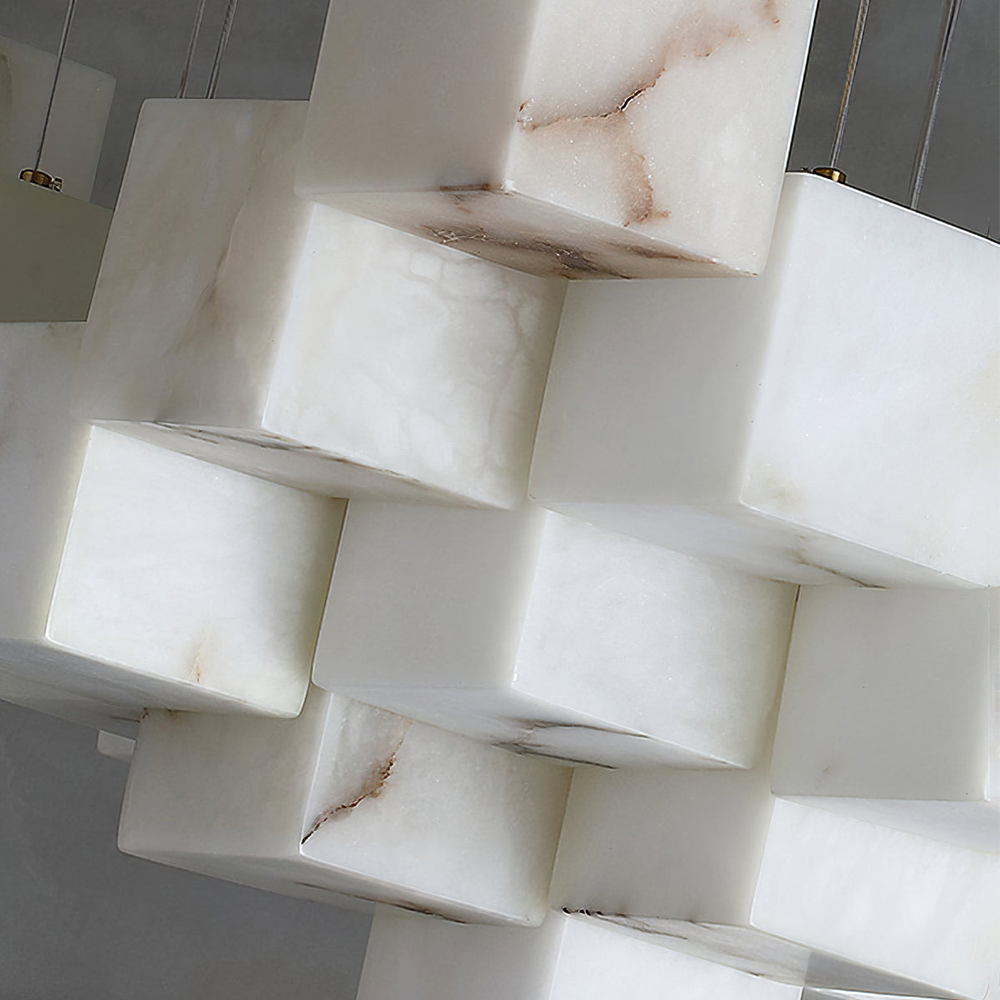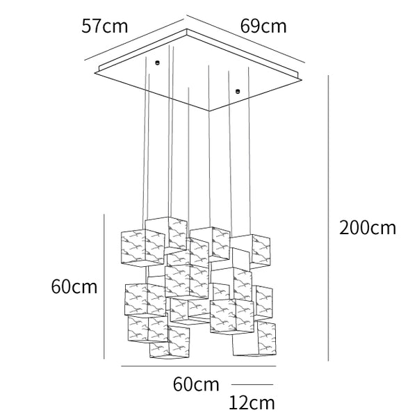 Tämä riippuvalaisin on hieno ja tyylikäs riippuvalaisin, jonka värisävy on valkoinen. Sen ainutlaatuisuus piilee useista laatikoista koostuvan lampunvarjostimen suunnittelussa. Jokainen laatikko on valmistettu huolellisesti kipsimateriaalista, mikä luo taiteellisen geometrisen muodon, joka tuo sisätilaan omaleimaisen valon ja varjon leikin