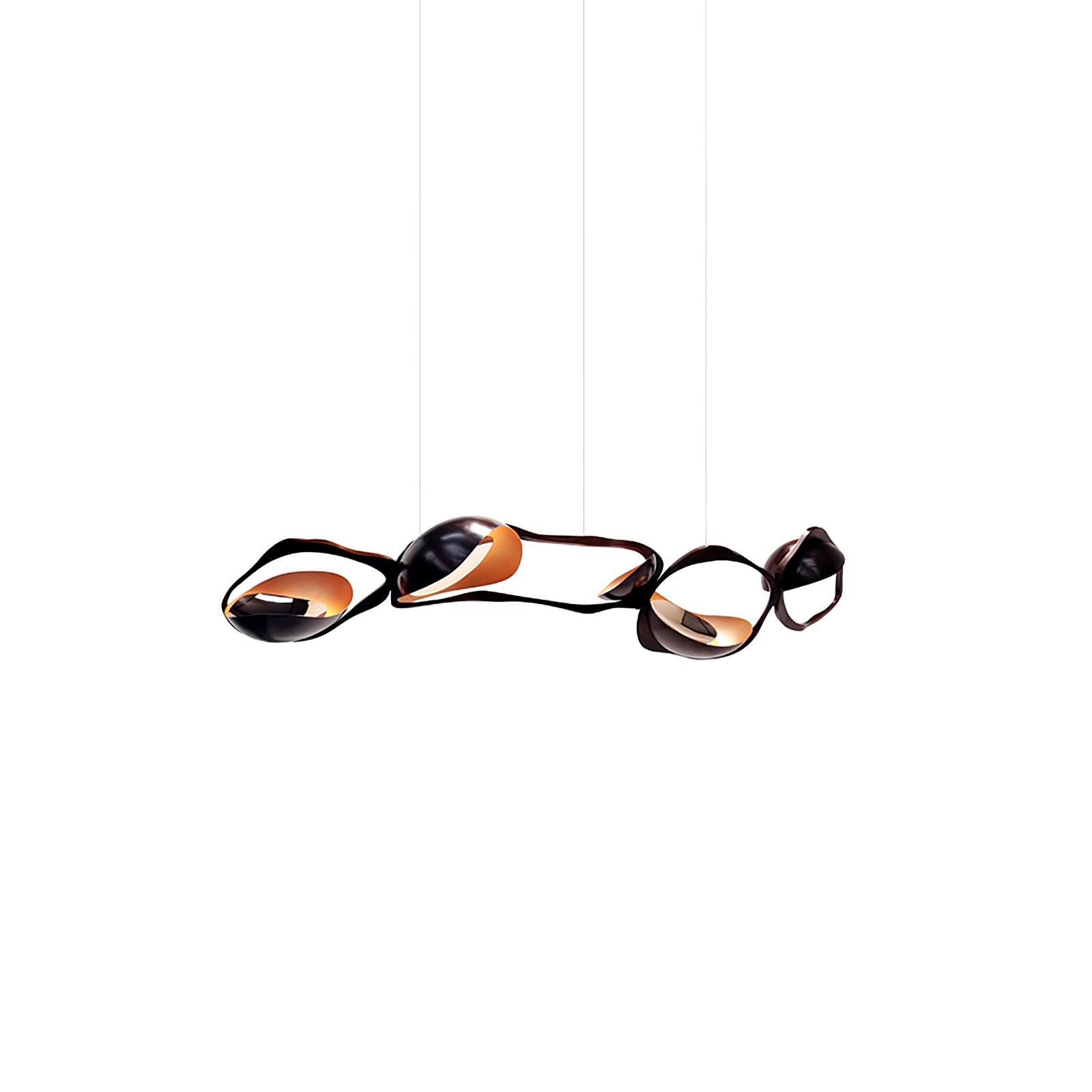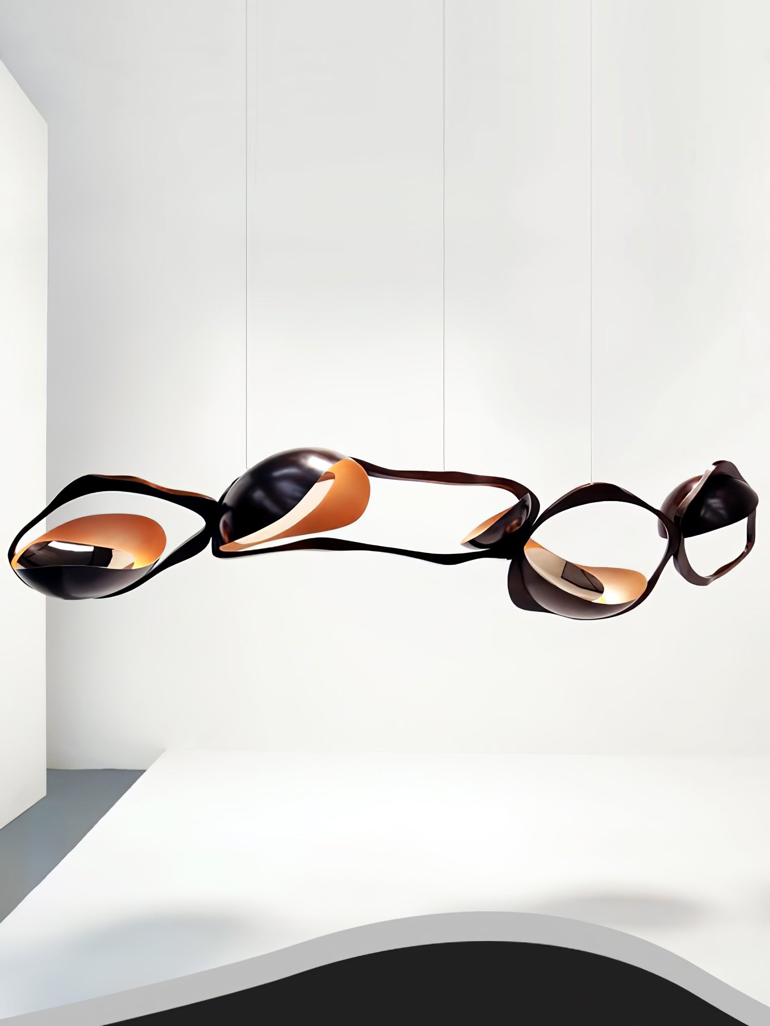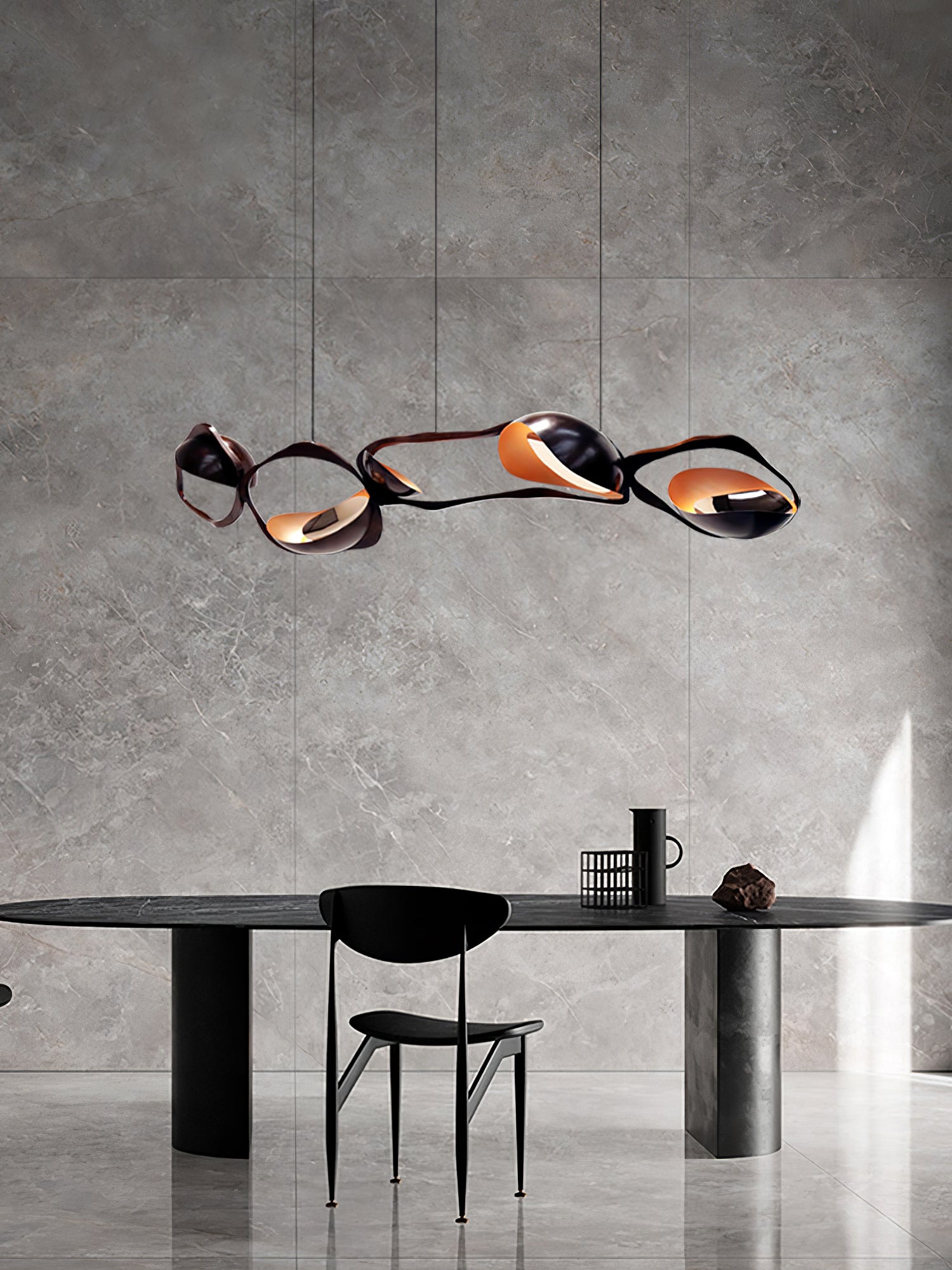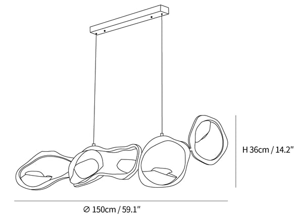 Muscularity-riippuvalaisin lisää ylellistä ilmettä mihin tahansa sisätilaan. Valaisin koostuu neljästä vaakasuunnassa kohdistetusta, tumman soikeasta muodosta, joista jokaisessa on lämpimän kullan hehkuva kuori ja upotetut peilikiillotetut paneelit, jotka lähettävät ainutlaatuista, lämmintä ja herkkää valoa. Se ei ole ilo silmälle ainoastaan kaarevia lihaksia muistuttavalla muodolla, vaan myös pronssin vaihtelevilla sävyillä, jotka muodostavat jokaisen ellipsin, joka näyttää laajenevan ja supistuvan kuin voimakas olento.