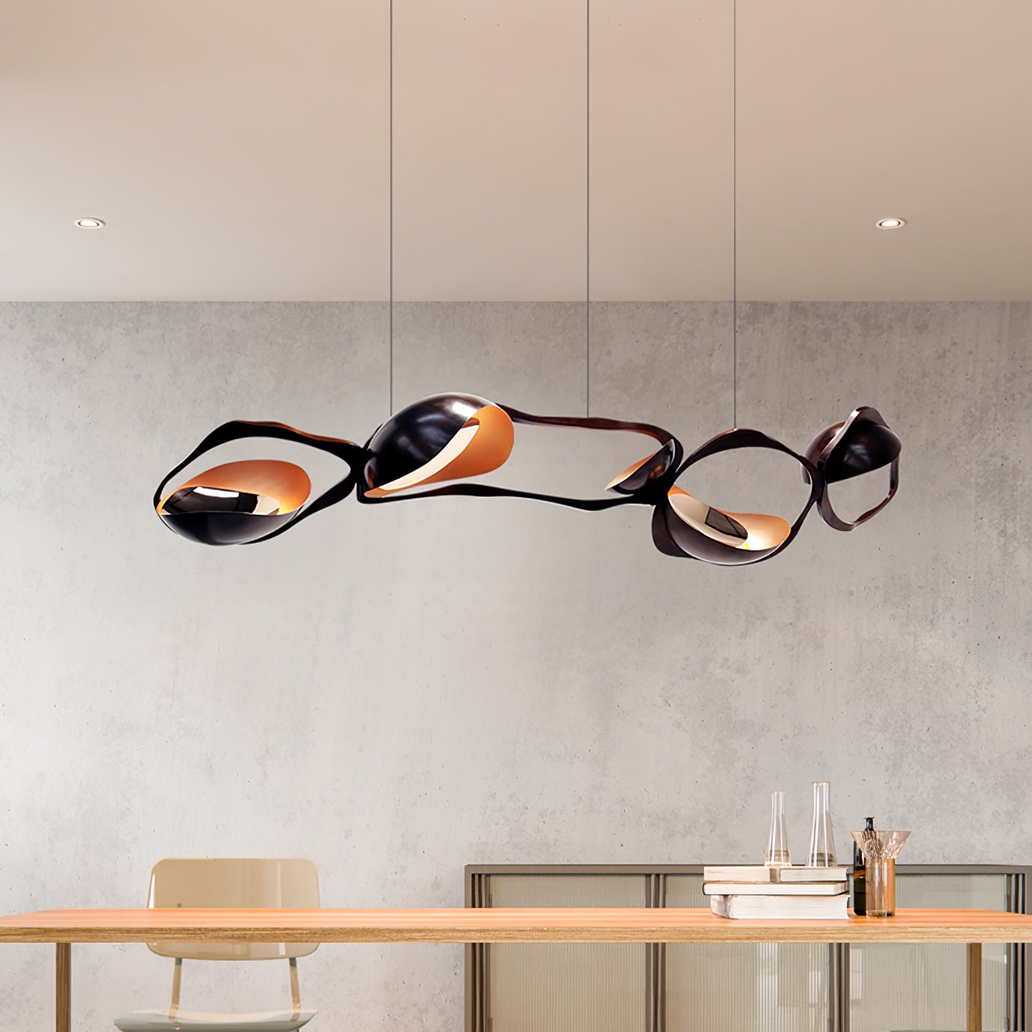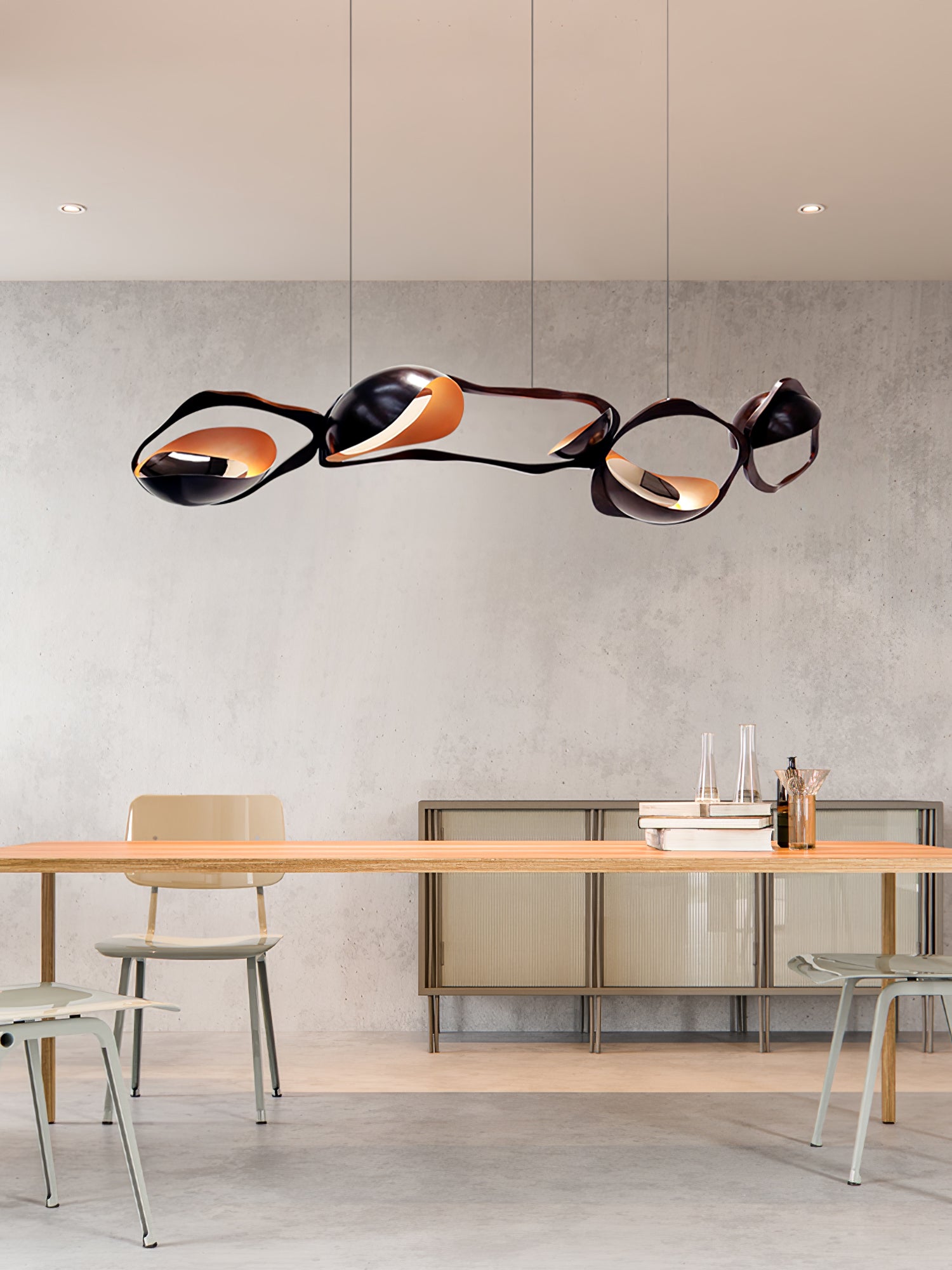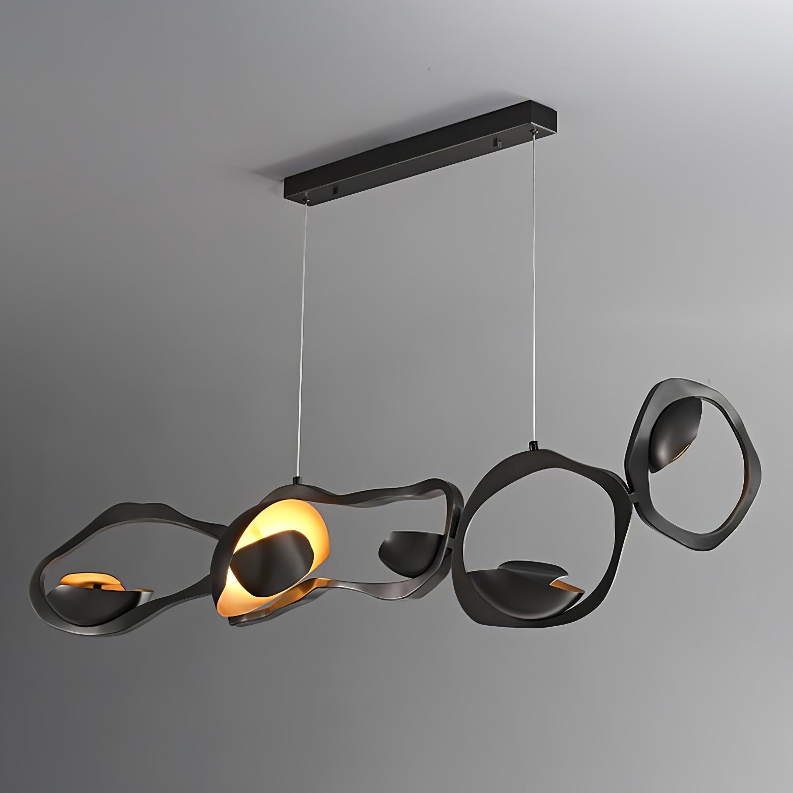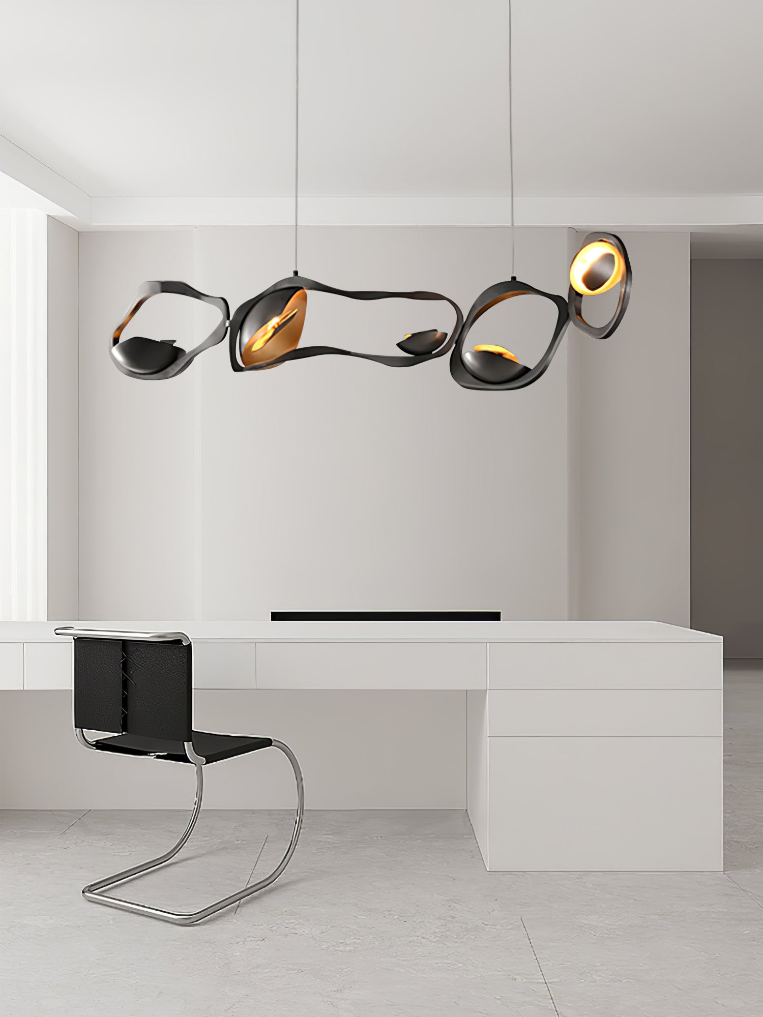 Muscularity-riippuvalaisin lisää ylellistä ilmettä mihin tahansa sisätilaan. Valaisin koostuu neljästä vaakasuunnassa kohdistetusta, tumman soikeasta muodosta, joista jokaisessa on lämpimän kullan hehkuva kuori ja upotetut peilikiillotetut paneelit, jotka lähettävät ainutlaatuista, lämmintä ja herkkää valoa. Se ei ole ilo silmälle ainoastaan kaarevia lihaksia muistuttavalla muodolla, vaan myös pronssin vaihtelevilla sävyillä, jotka muodostavat jokaisen ellipsin, joka näyttää laajenevan ja supistuvan kuin voimakas olento.