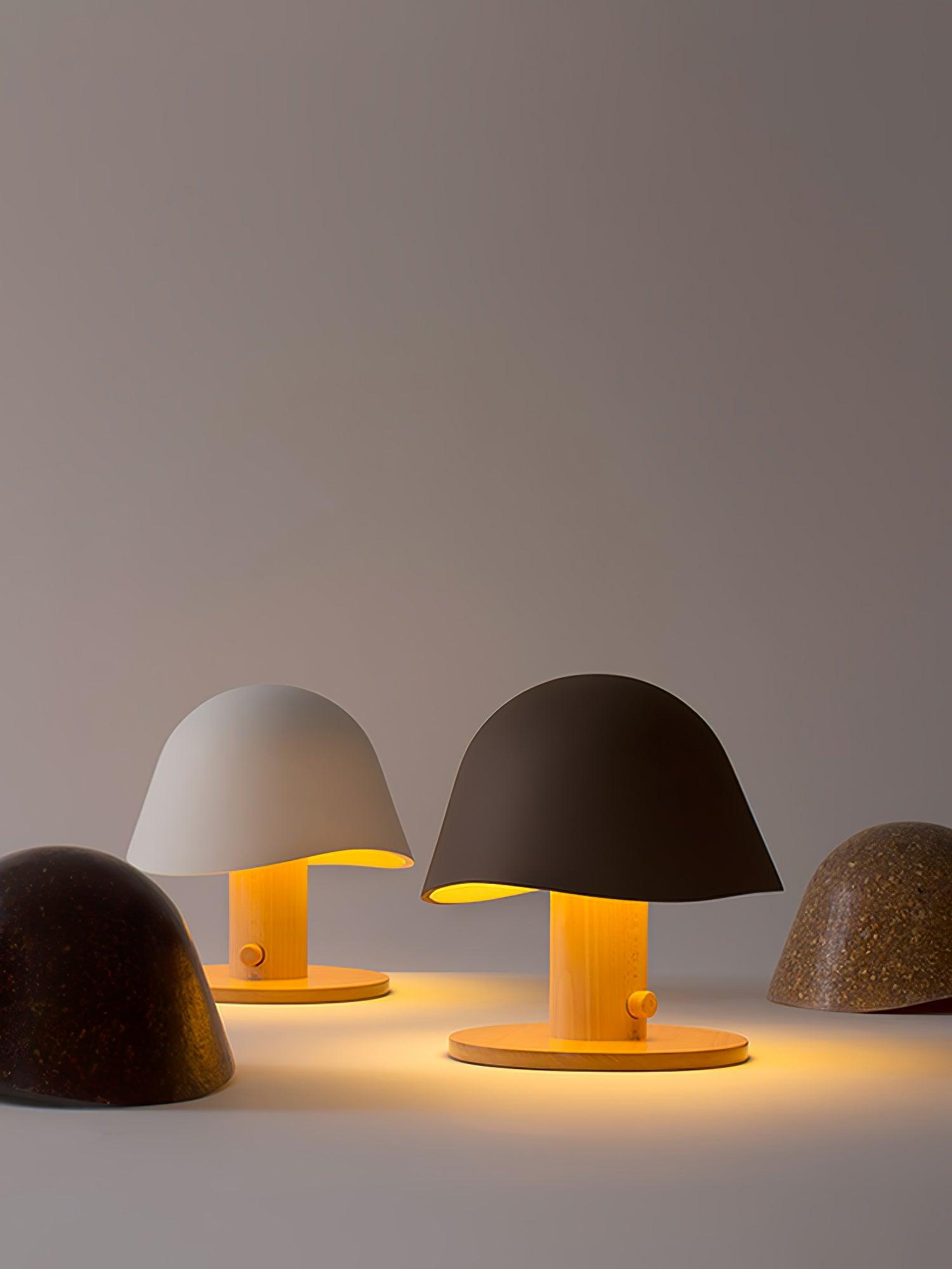 Valitse valkoinen, musta tai ruskea. Näissä upeissa pöytävalaisimissa on hauska sieni-inspiraatio, jonka ansiosta ne näyttävät yksinkertaisesti täydelliseltä yöpöydälläsi sängyn vieressä tai sivupöydälläsi olohuoneessa. Lamput on valmistettu ihanasta hartsin ja metallin sekoituksesta. Rakastat lamppujen viehätysvoimaa aina, kun sytytät ne.