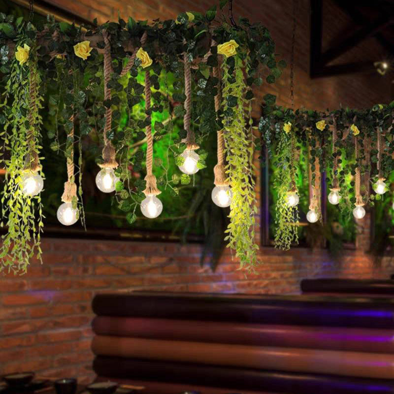 Vihreä tekovehreys tuo virkistävän visuaalisen vaikutelman, valkoiset ruusut on koristeltu kattokruunun koristeelliseksi ja roikkuvat LED-polttimot ovat kuin kesän tulikärpäsiä palaessaan.