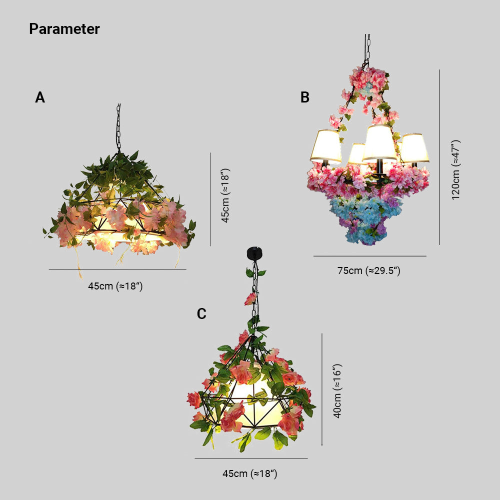 Tämä riippuvalaisin koostuu pääosin metallisesta lampun rungosta sekä koristeellisista kukista ja lasivarjostimesta, hieno ammattitaito, kaunis ja kestävä.