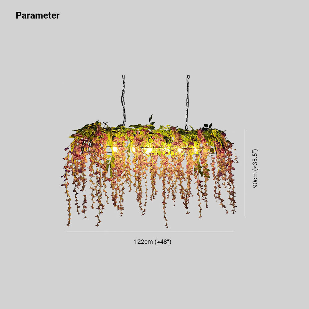 Riippuvalaisimen yleinen muoto on suorakaiteen muotoinen, ja jotkut roikkuvat simuloidut kasvit muodostavat linnunpesän muodon.