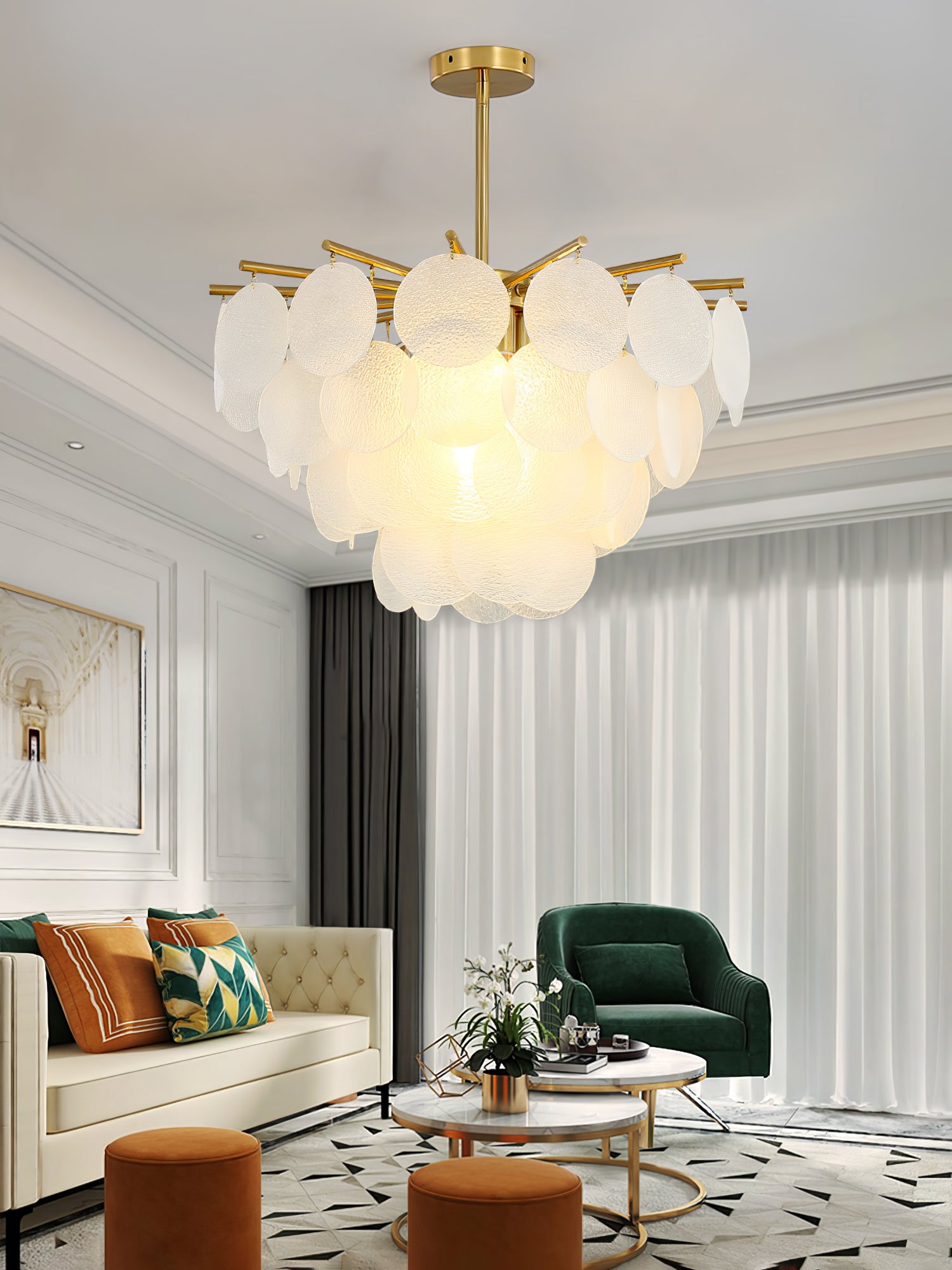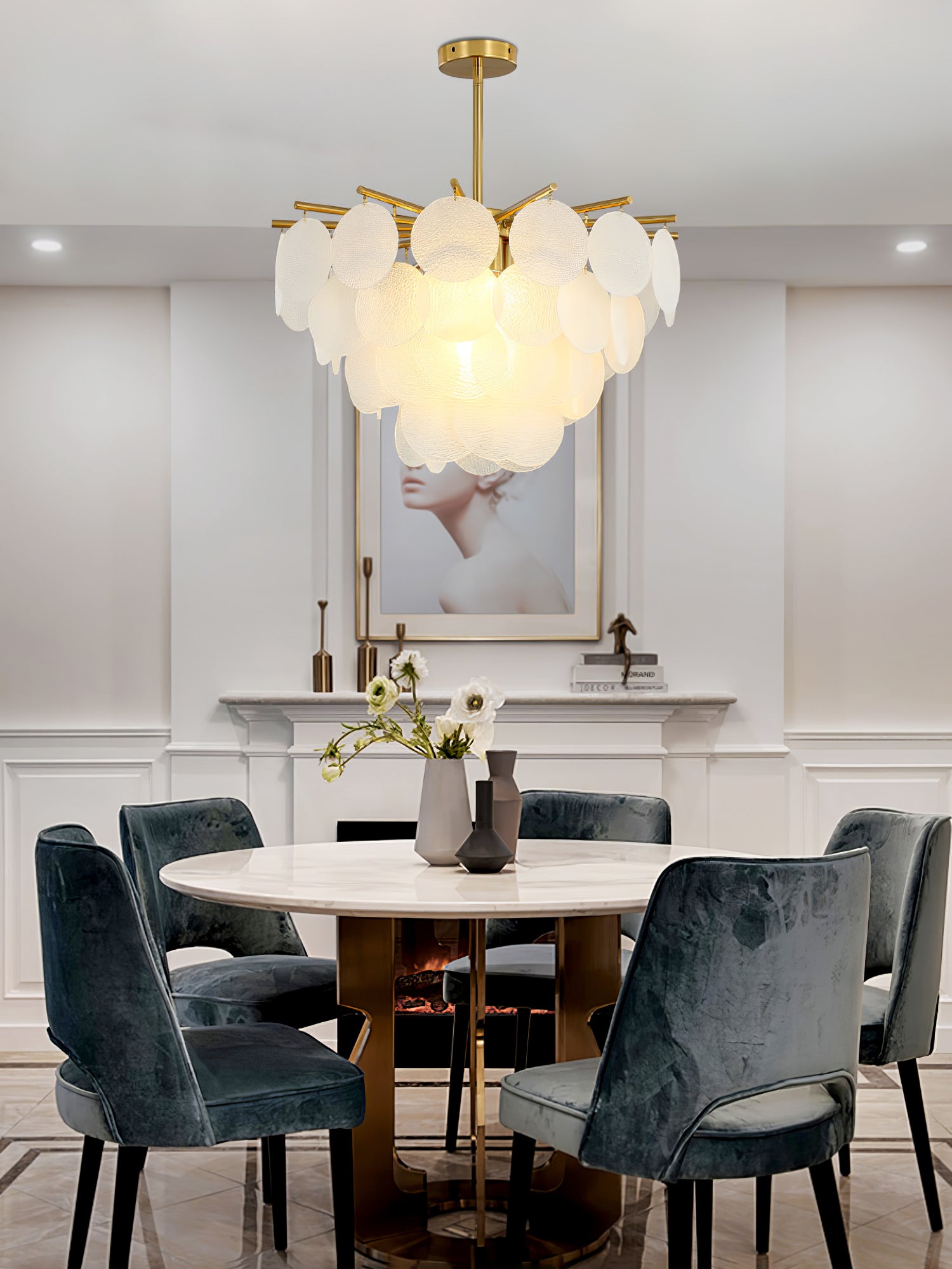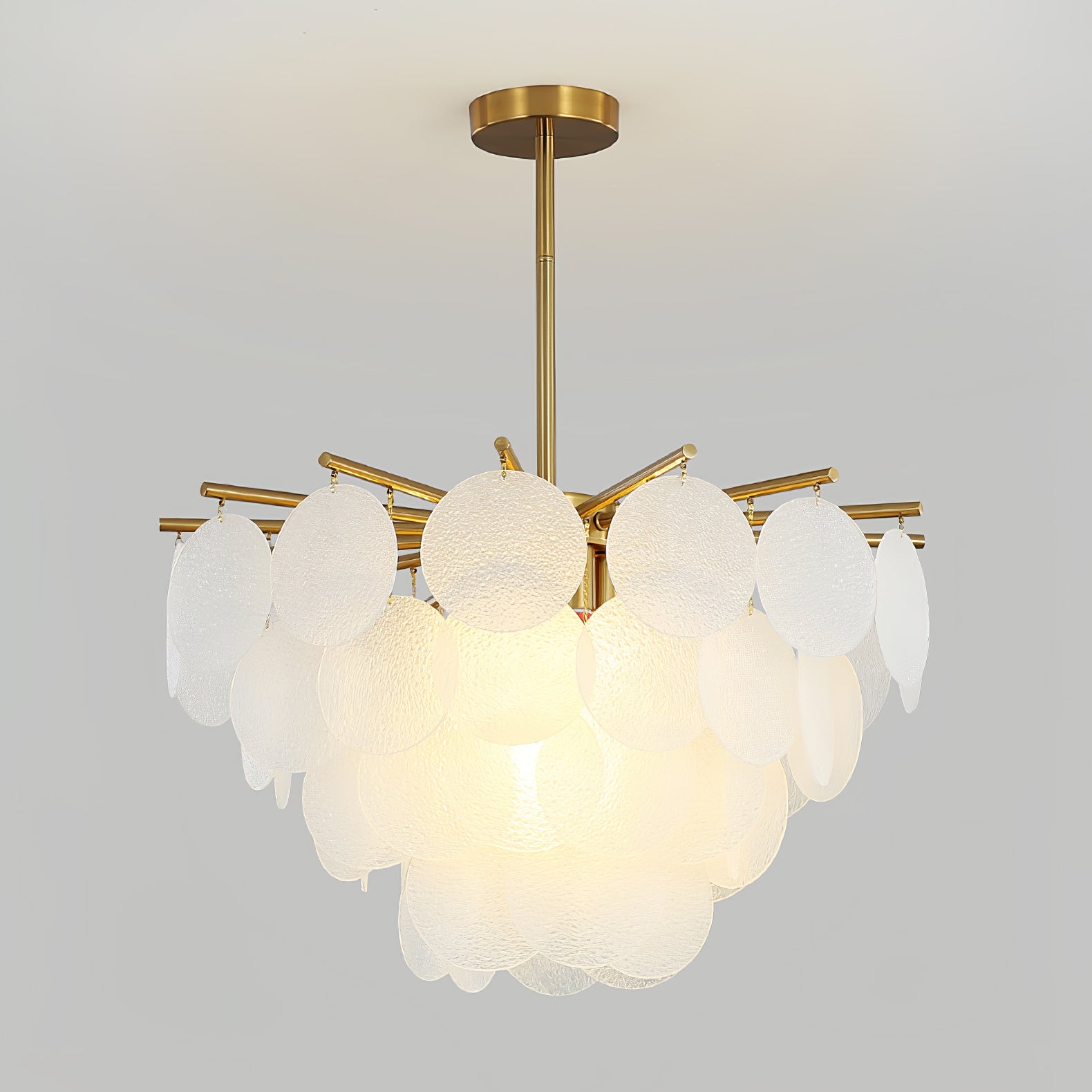 Jokainen lasi on ainutlaatuinen. Käsityöläisemme muodostavat pisarat prosessilla, jossa muodostuu aaltoiluja ja kristallimaisia tekstuureja. Läpinäkyvää lasia täydentää ja kauniisti kehystää symmetrinen metallityö. Säteilevä valo on lämmin, pehmeä hehku.