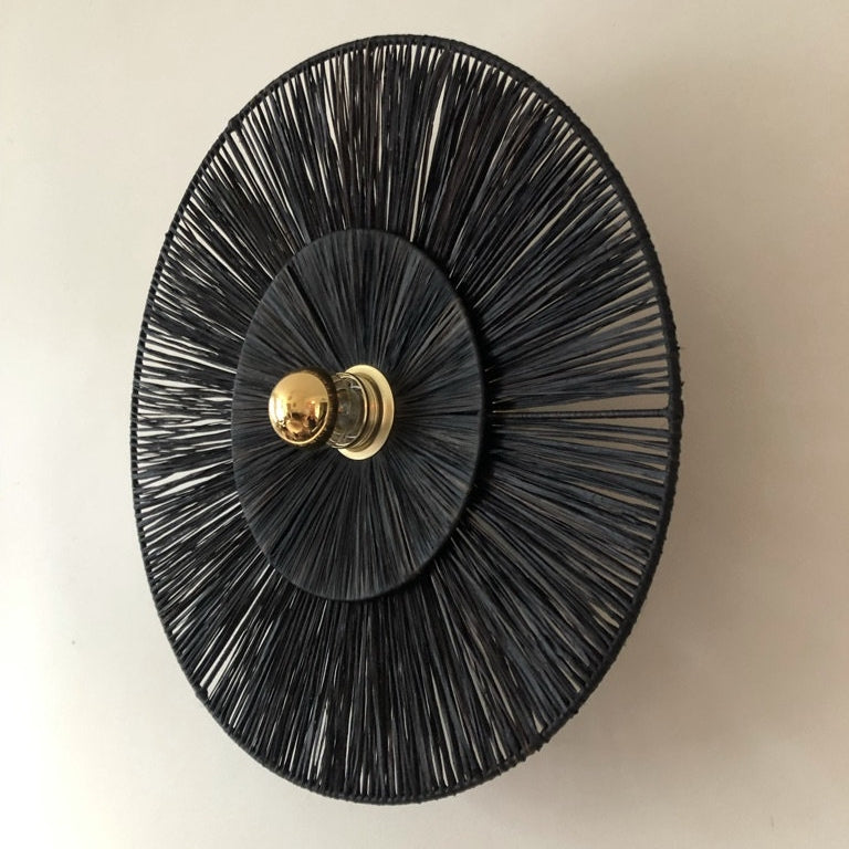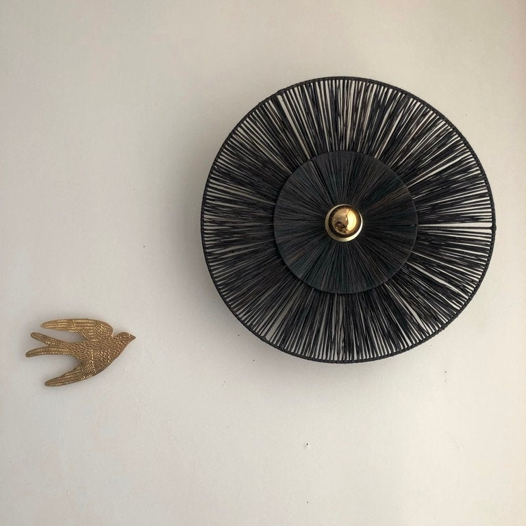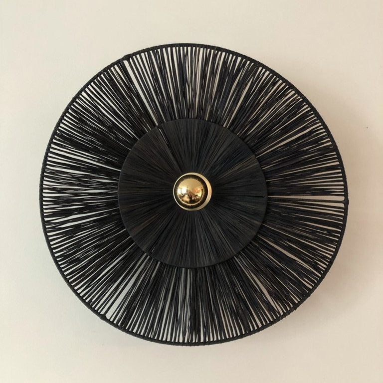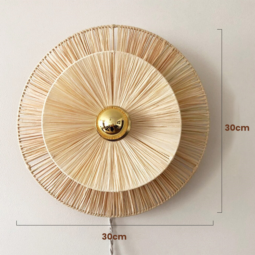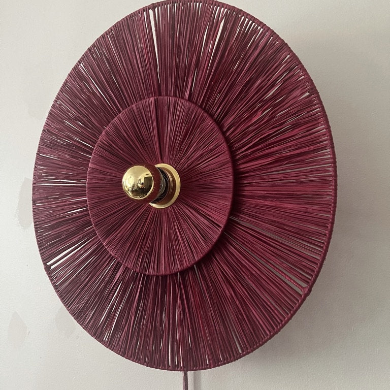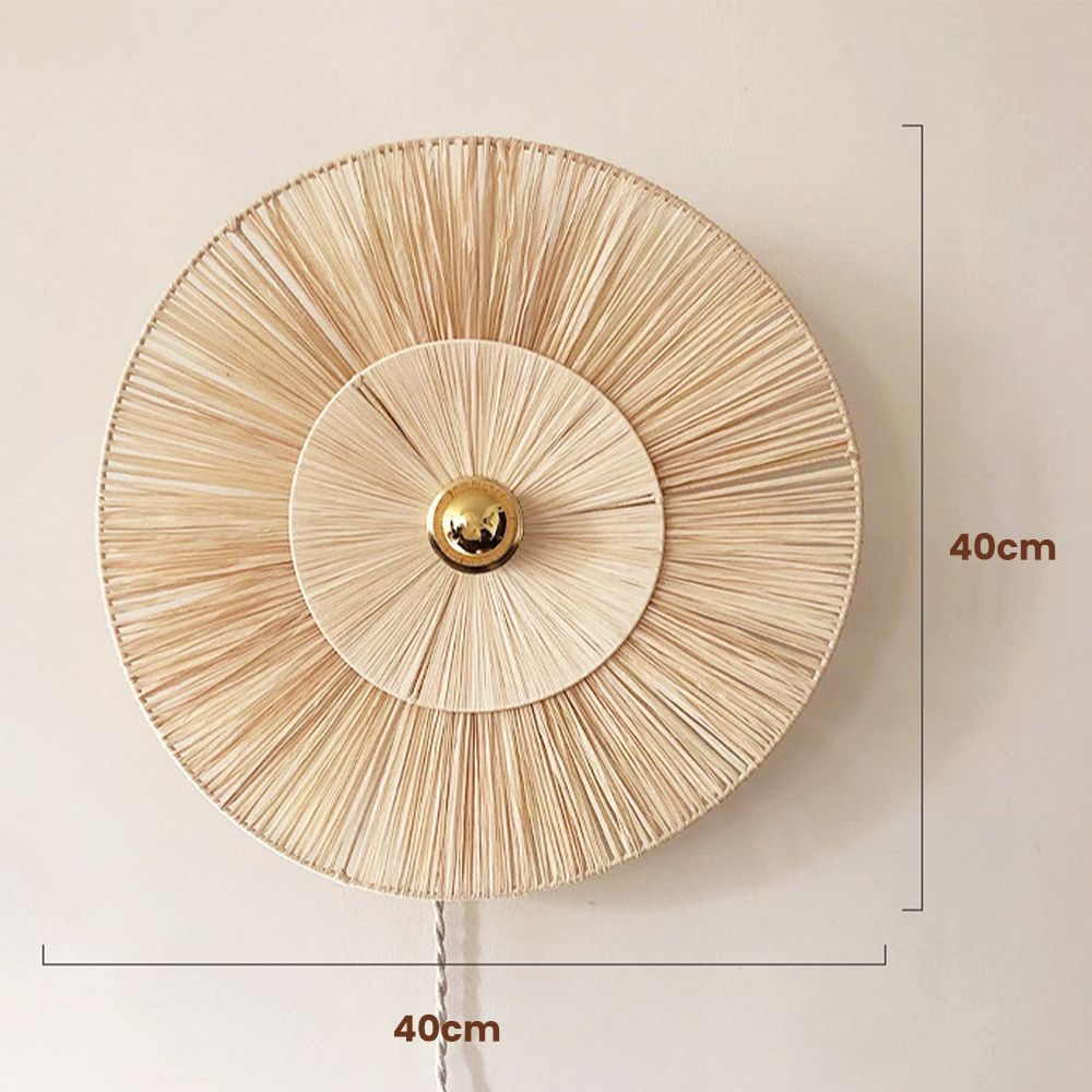 Se koostuu kahdesta epoksimaalatusta metallilevystä (hapettumisvaaran välttämiseksi). Iso kiekko on puettu luonnonrafiaan ja pieni kiekko valkoiseen luonnonraffiaan.GALIA rafiassa koristaa seinääsi kuin jalokivi ja sopii mainiosti korostusvalaistukseen tai jopa pienen huoneen valaisuun.