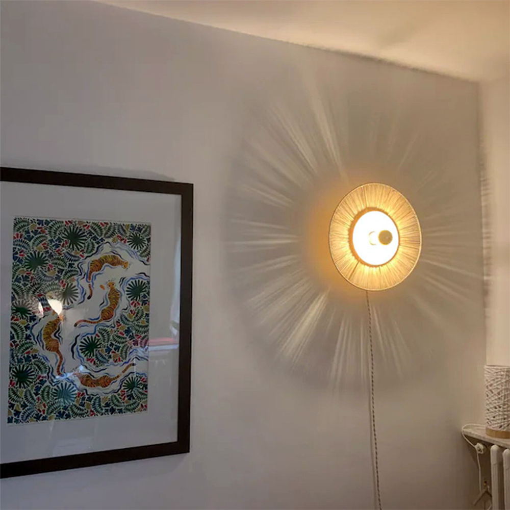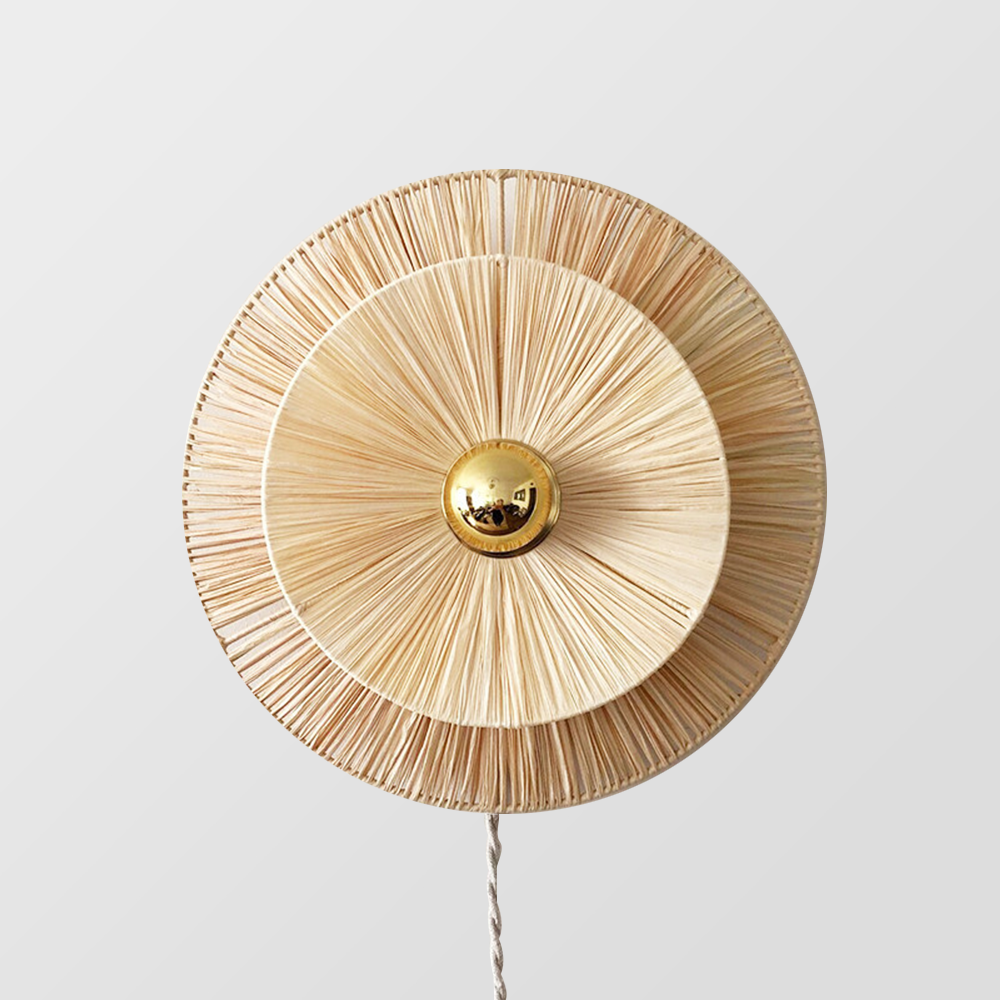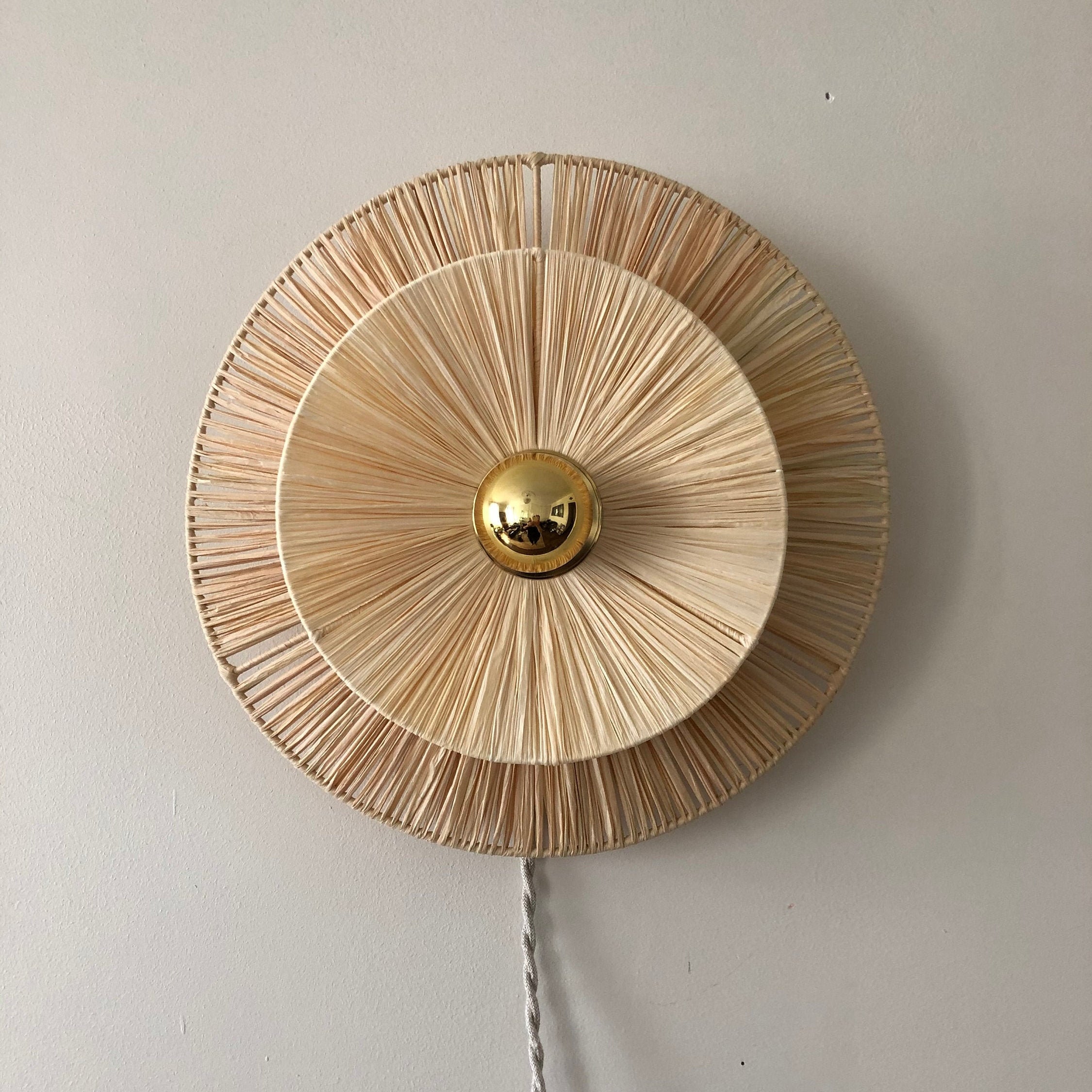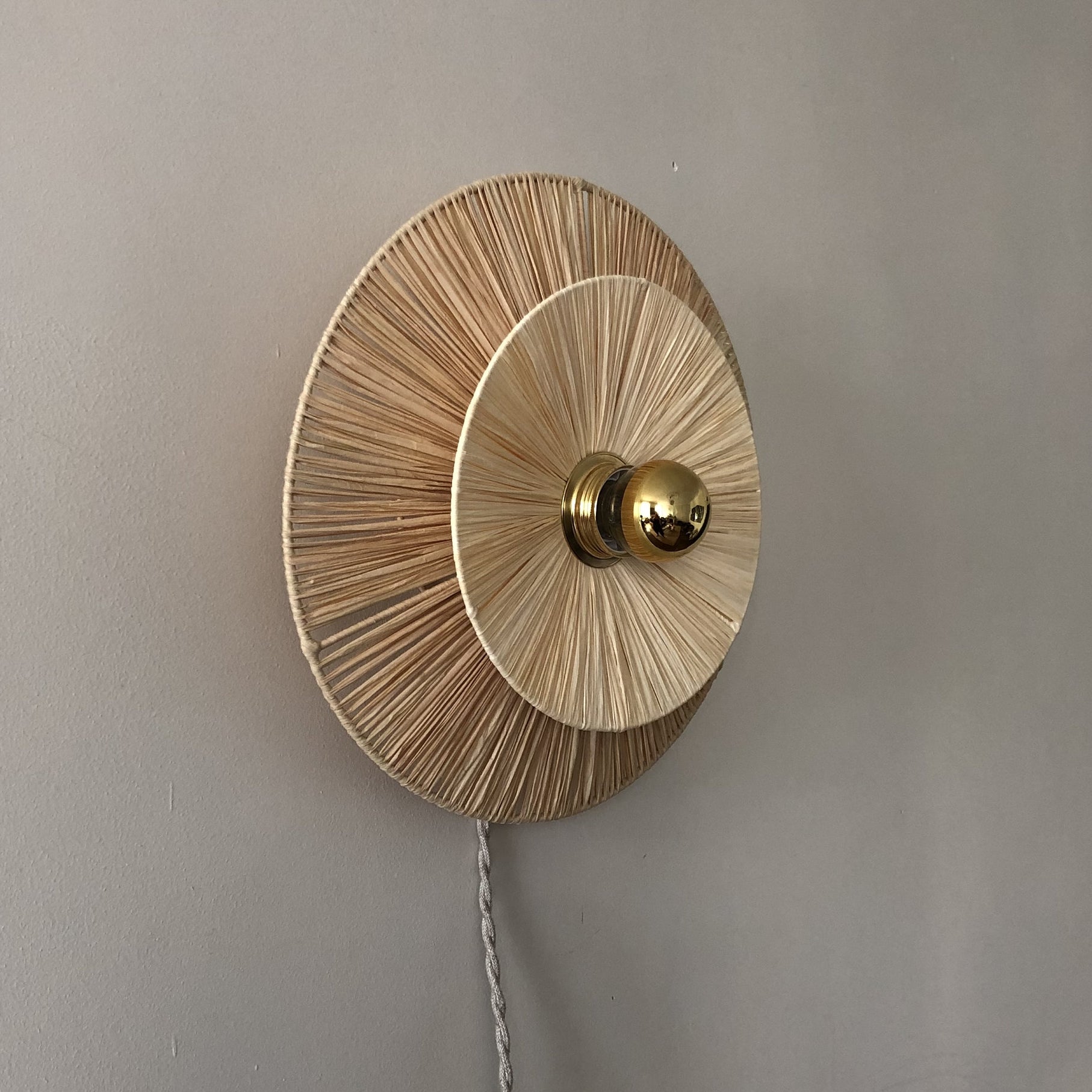 Se koostuu kahdesta epoksimaalatusta metallilevystä (hapettumisvaaran välttämiseksi). Iso kiekko on puettu luonnonrafiaan ja pieni kiekko valkoiseen luonnonraffiaan.GALIA rafiassa koristaa seinääsi kuin jalokivi ja sopii mainiosti korostusvalaistukseen tai jopa pienen huoneen valaisuun.
