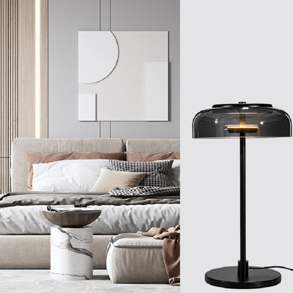 Tässä pöytävalaisimessa on moderni elegantti ja korostusmuotoilu sekä hieno ja elegantti ulkonäkö. Sileä, musta, lasinen lampunvarjostin ja metallijalusta päästävät lämpimän mukavan valon makuuhuoneeseen, olohuoneeseen.