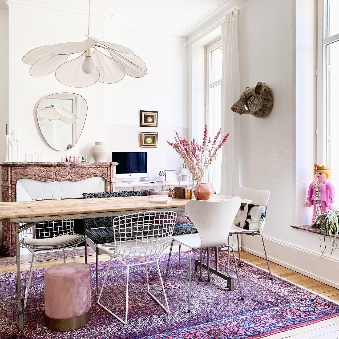 Kynelten muotoisen terälehden tyylikkääseen muotoon suunnittelija lisää kunnianosoituksen säleiköllisten makuuhuoneiden retrokattotuulettimille. Tämä terälehtiriipus leikkii hienovaraisesti valolla, tuoden huoneeseen pehmeää selkeyttä ja herkkiä varjoja kattoon.