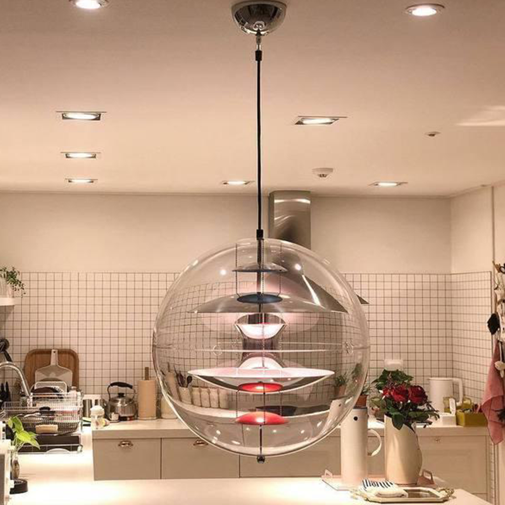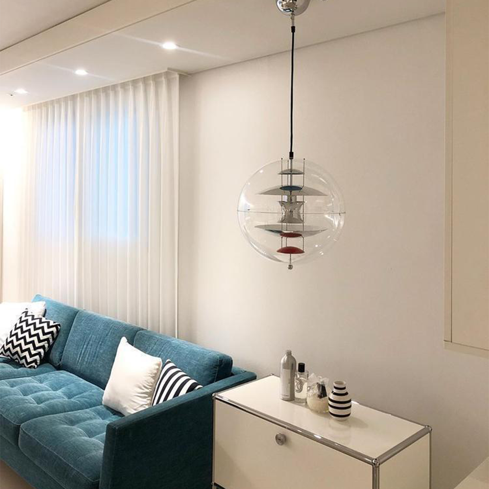 Vaikka leikkiminen värilämpötilalla ja valon väreillä ei ole enää harvinaista nykymaailmassa ja nykyaikaisissa valaistusjärjestelmissä, riipus valaisee ainutlaatuisella tavalla valon, valon värin ja valon mekaanisen ja optisen vuorovaikutuksen. huoneen tunnelmaa. Lisäksi tämä klassinen valaisin rikastuttaa jokaista ympäristöä kirkkaalla akryylilasivarjostimellaan ja teknisesti viileällä alumiiniheijastimella, joka vangitsee kaikki katseet.