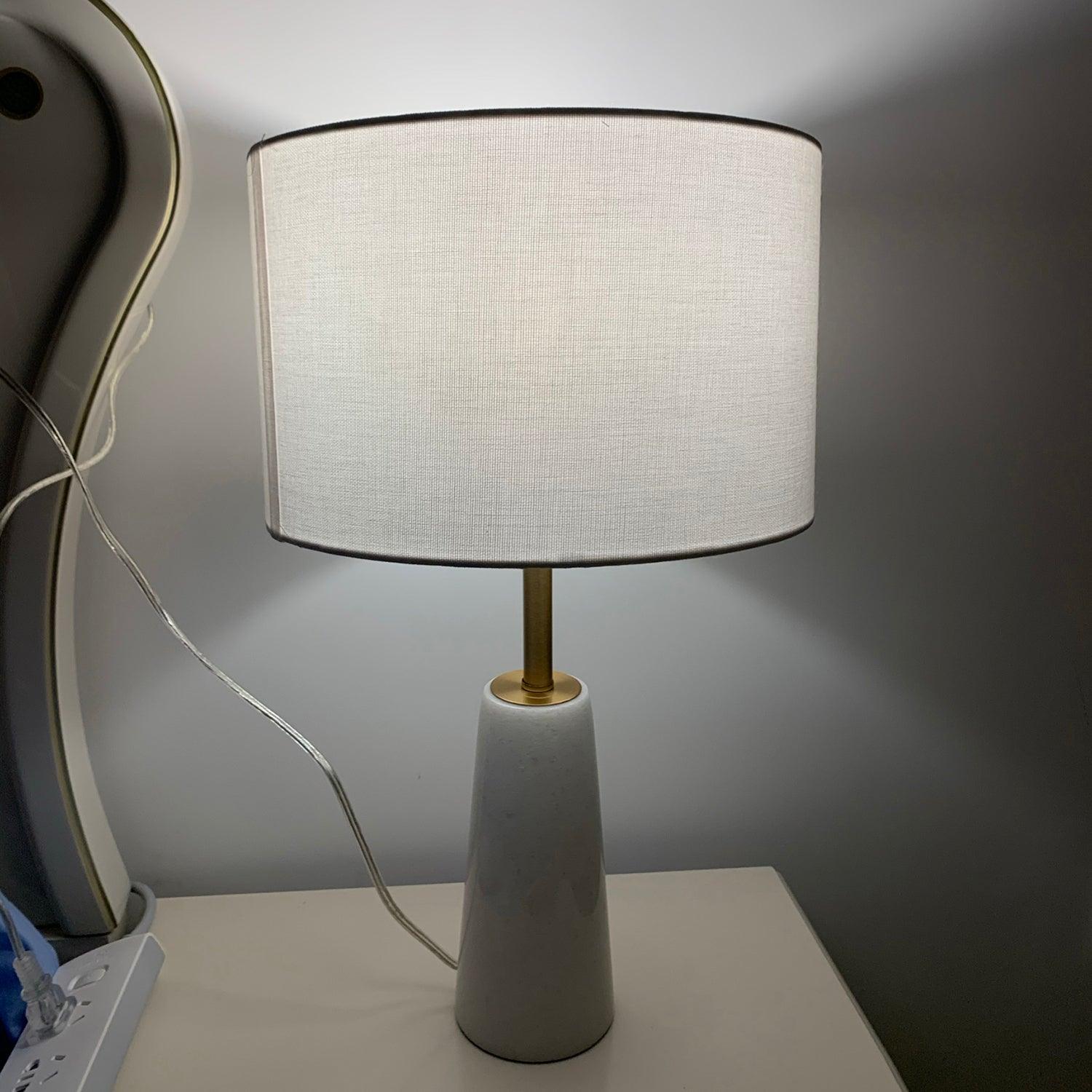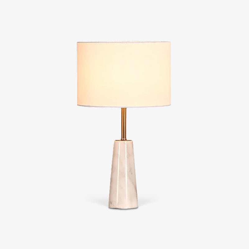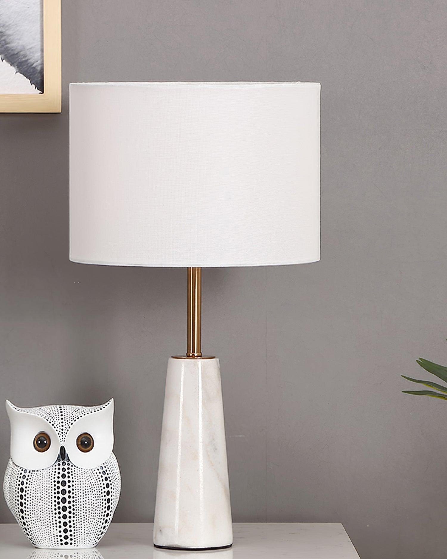 Tämä eleganssia täynnä oleva pöytävalaisin ratkaisee valaistusongelmat tyylillä. Valaisimen hienostunut muotoilu sisältää valkoisen marmorisen pohjan, metal varren, rumpuvarjostimen ja tyylikkään siluetin, jotka tekevät katseenvangitsijasta missä tahansa huoneessa.
