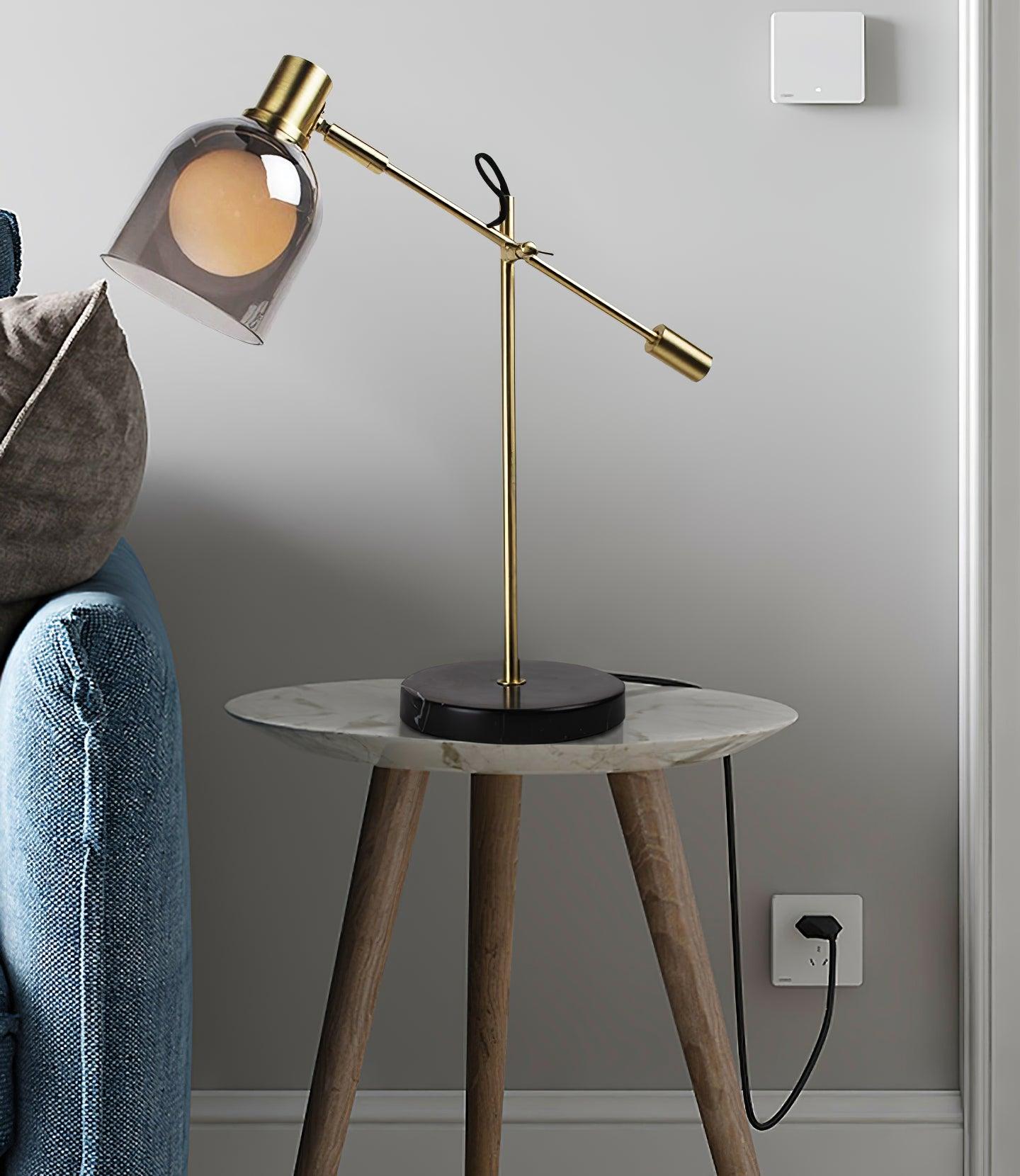 Kaunis pöytävalaisin metallisilla yksityiskohdilla ja kiinteällä mustalla marmorialustalla. Täysin säädettävä lukuvalaisin toimitetaan savustetun lasin ulkovarjostimen ja opaalilasisen sisävarjostimen kanssa hehkulampun sijoittamiseen. Mustalla linjakytkimellä toimiva se sopii erinomaisesti käytettäväksi oleskelutiloissa, käytävillä ja makuuhuoneissa.
