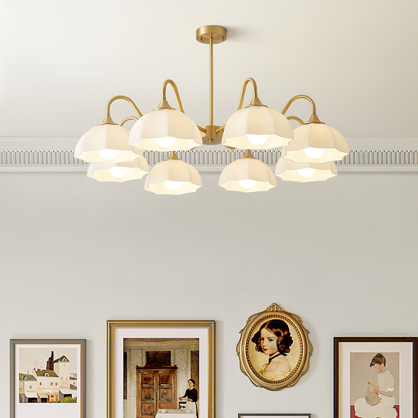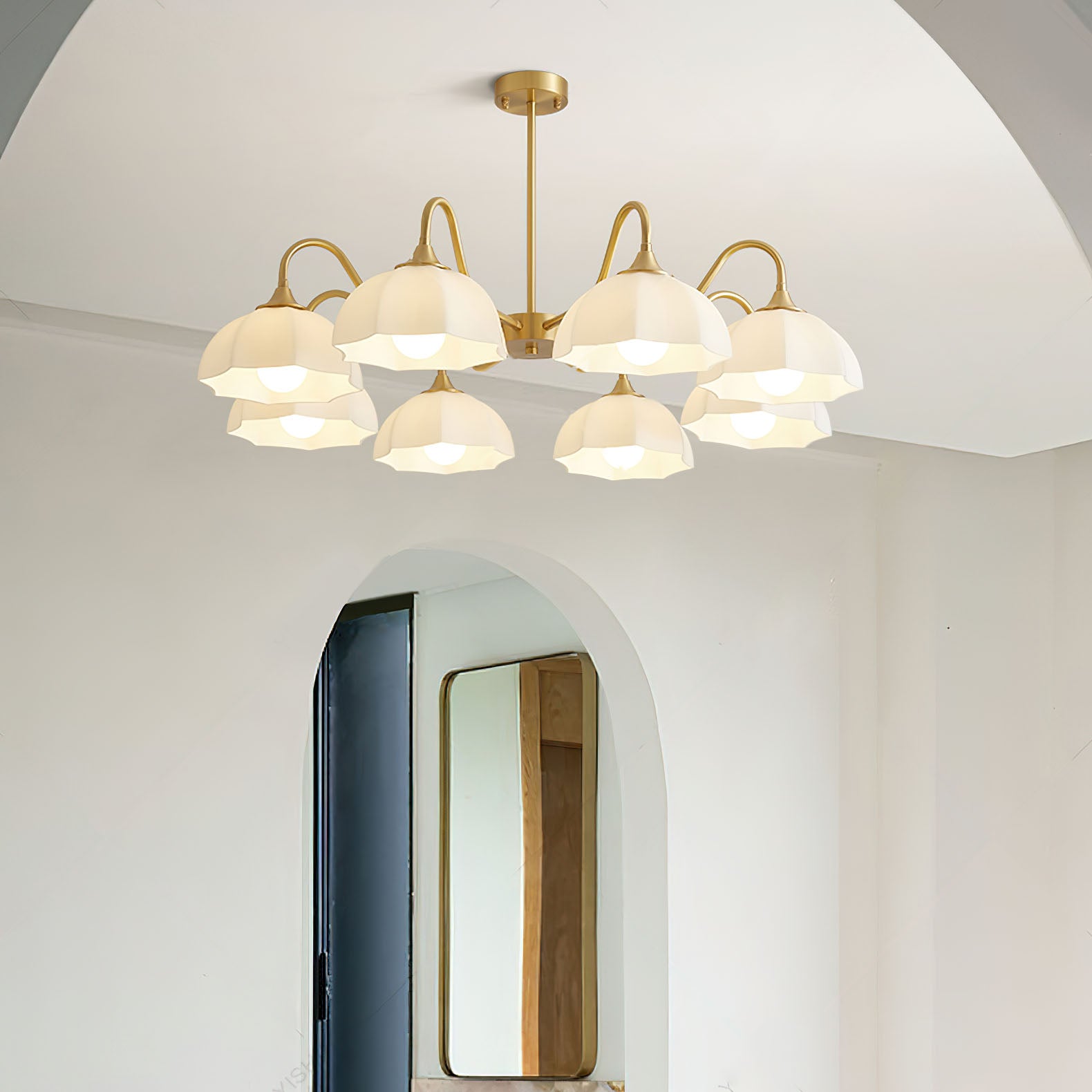 Tämä nykyaikainen kahdeksankulmainen lasikulhokruunu on täydellinen lisä mihin tahansa asuintiloihin. Tyylikkäällä kuparisella muotoilulla se tuo ripauksen ranskalaista tyyliä mihin tahansa huoneeseen. Nauti sen luomasta tunnelmasta ruokasalissasi tai makuuhuoneessasi.