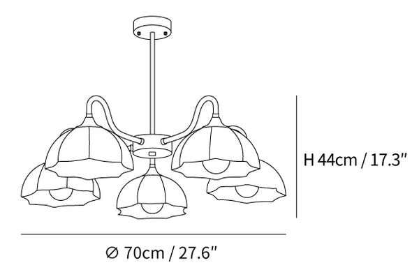 5 pään koko: Halkaisija 70 cm x K 44cm / Φ 27,6″ x K 17,3″