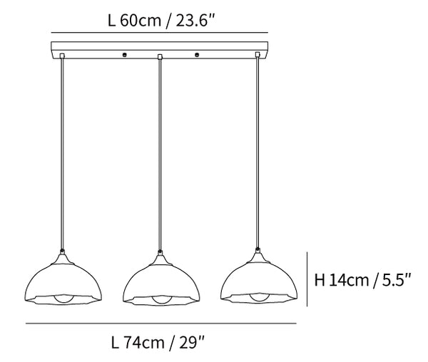 3 päätä Pitkä katos Koko: P 74 cm x L 20 cm x K 14 cm / P 29" x L 7,9" x K 5,5"