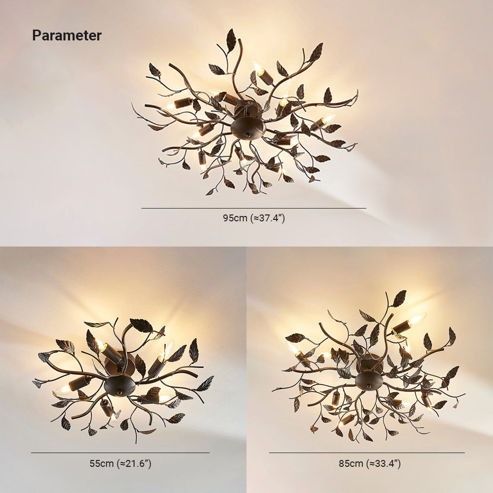 - Ainutlaatuinen lehtien ja oksien muotoilu tekee kattovalaisimesta tyylikkään koriste-kappaleen, joka voidaan yhdistää täydellisesti vintage- ja teollisuustyyliin.