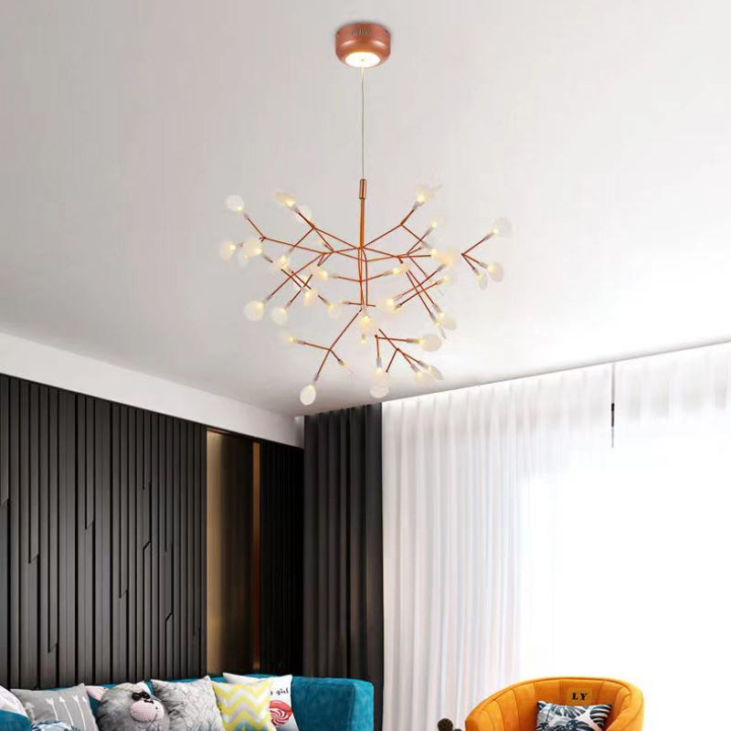 - Ruusukultainen runko ja valkoinen lehden muotoinen pää tekevät kattokruunusta tyylikkäämmän ja yksinkertaisemman, hyvän koristeellisen kappaleen.