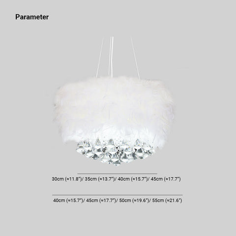 - O'Moore Feather Crystal Chandelier on upea mestariteos, joka on valmistettu harmonisesta metallin, kristallin ja höyhenen sekoituksesta. Kiiltävä metallijalusta varmistaa vakauden ja kestävyyden ja varmistaa, että tämä kattokruunu koristaa kotiasi vuosia. kristalli vangitsee ja taittaa valon luodakseen lumoavan hohtavan valaistuksen tanssin. Herkät höyhenet antavat tälle kattokruunulle ainutlaatuisen ja maagisen ulottuvuuden, mikä tekee siitä todellisen taideteoksen, enemmän kuin vain valaistuksen.