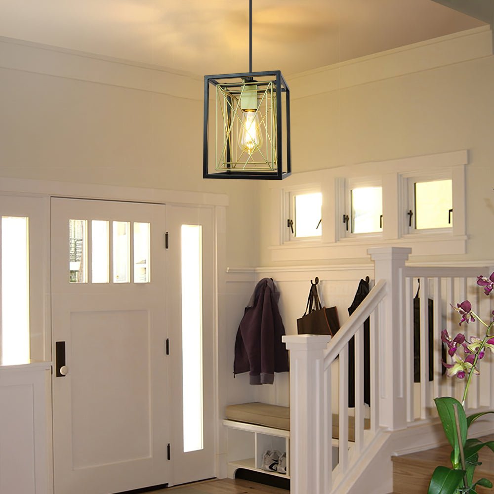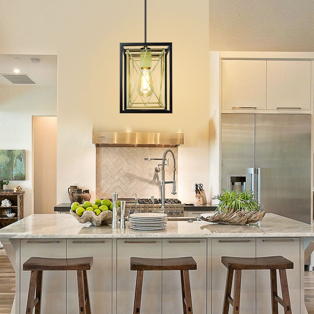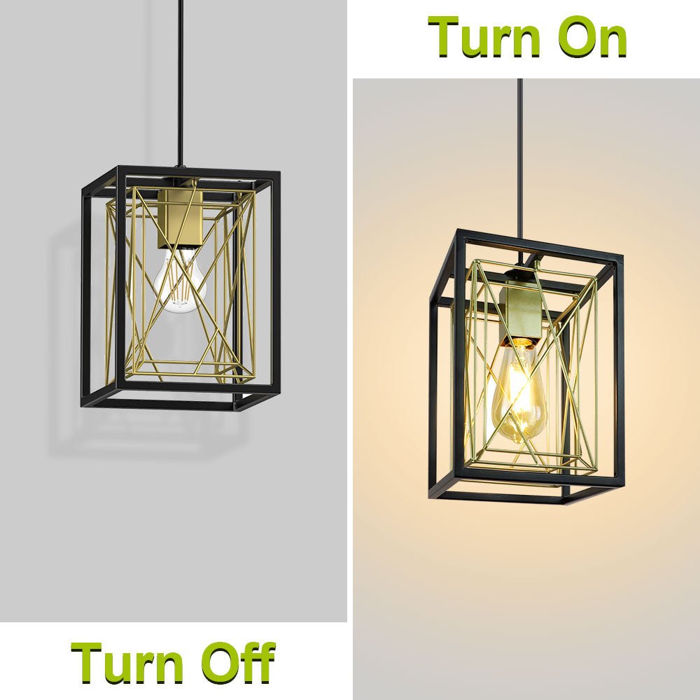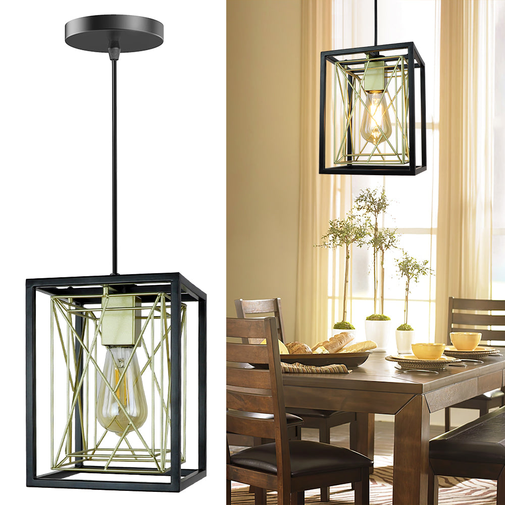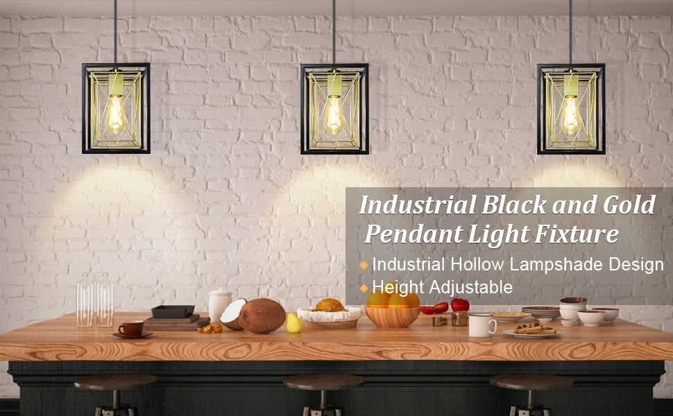 DINGLILIGHTING Teolliset riippuvalaisimet, 1-valo maalaistalon kattokruunu säädettävällä johdolla, vintage mustakultainen riippuvalaisin keittiösaaren eteisen ruokasalin eteiseen