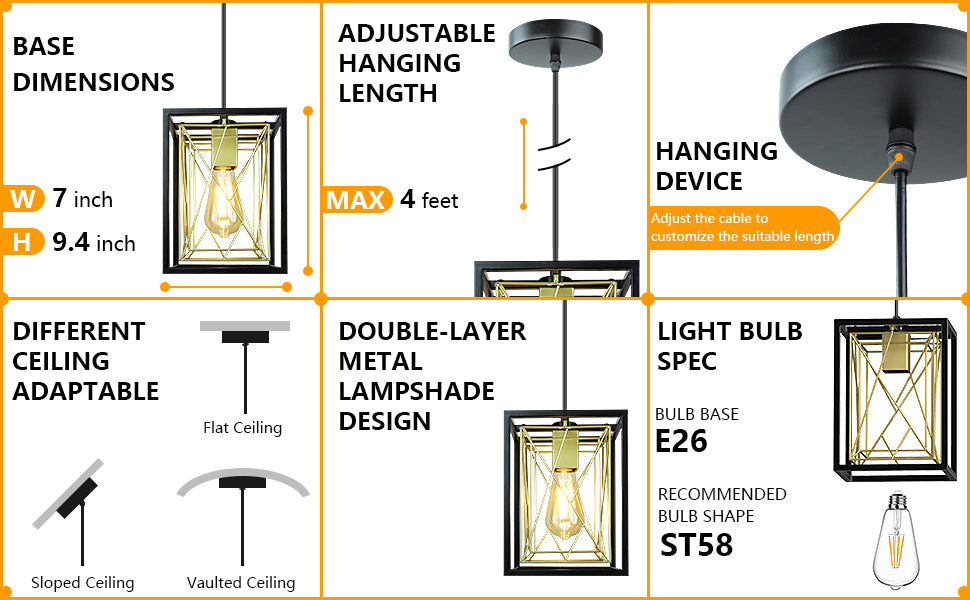 - 【Helppo asentaa】: Metallisten riippuvalaisimien mukana toimitetaan kaikki asennustarvikkeet nopeaa ja helppoa asennusta varten.