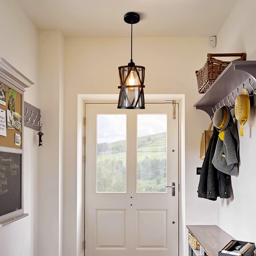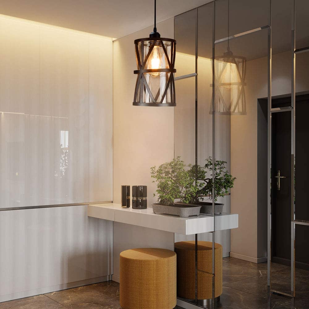 Puoliksi uppoasennettava riippuvalaisin, 1-kevyt teollinen Edison-kattolamppu, mustametallinen maalaistalon riippuvalaisin kirkkaalla lasisella lampunvarjostimella