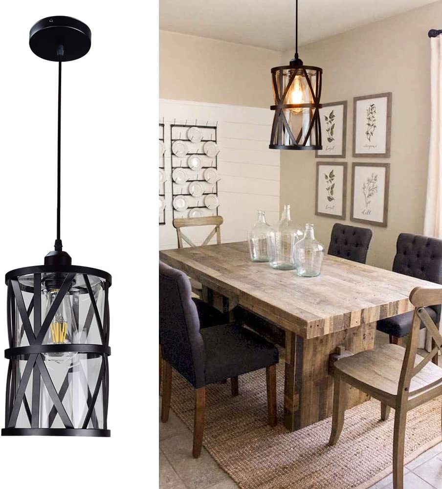 Puolitasossa asennettava riippuvalaisin, 1-kevyt teollisuuskattolamppu Edison, mustametallinen maalaistalon riippuvalaisin kirkkaalla lasilla lampunvarjostimella keittiöön, ruokailuhuone, eteinen