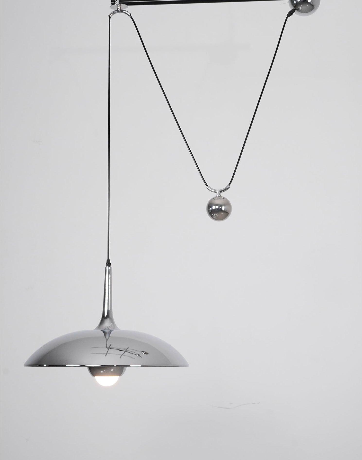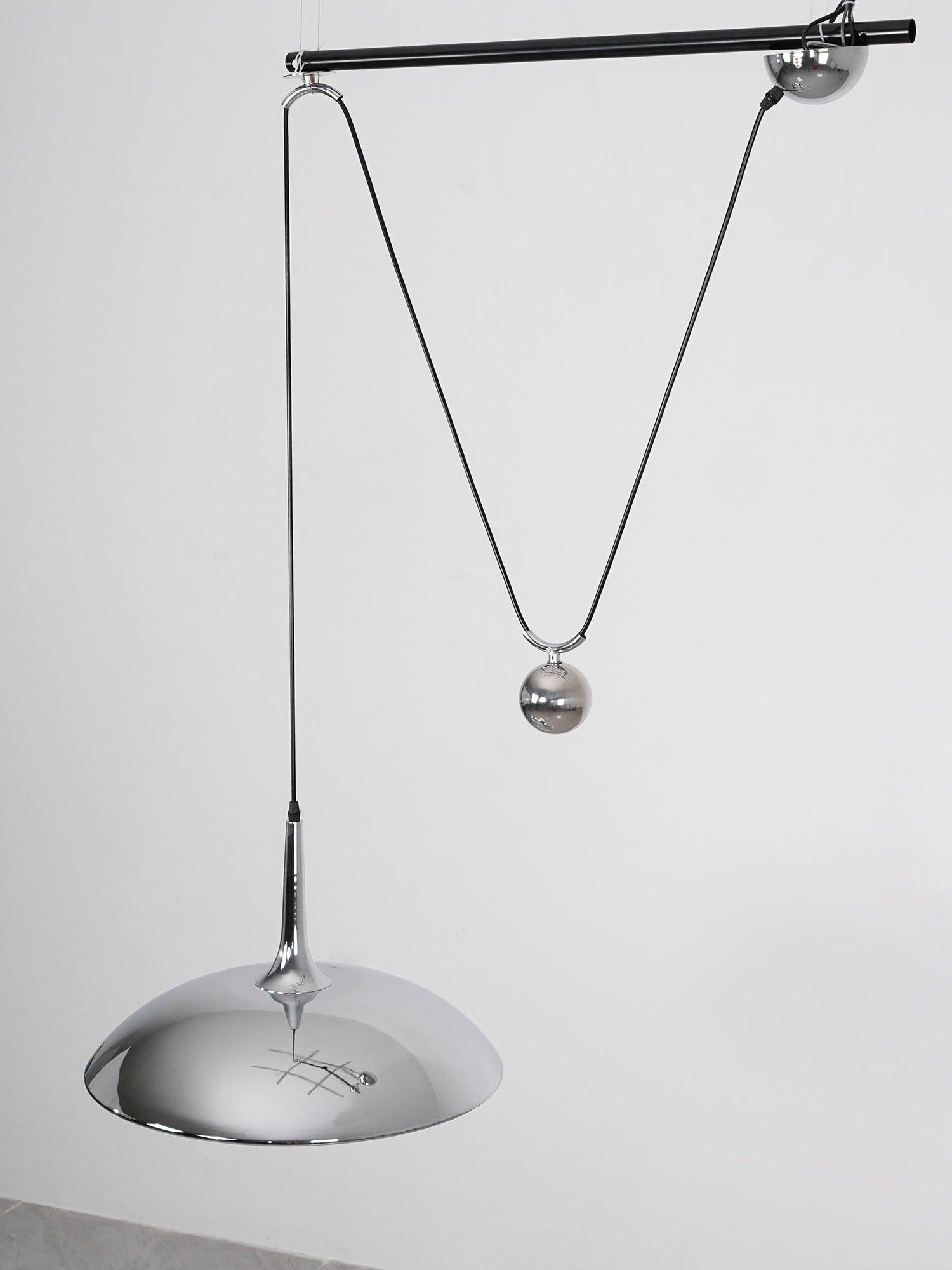 Erittäin kaunis ja erittäin harvinainen korkeussäädettävä heilurilamppu 1970-luvulta.