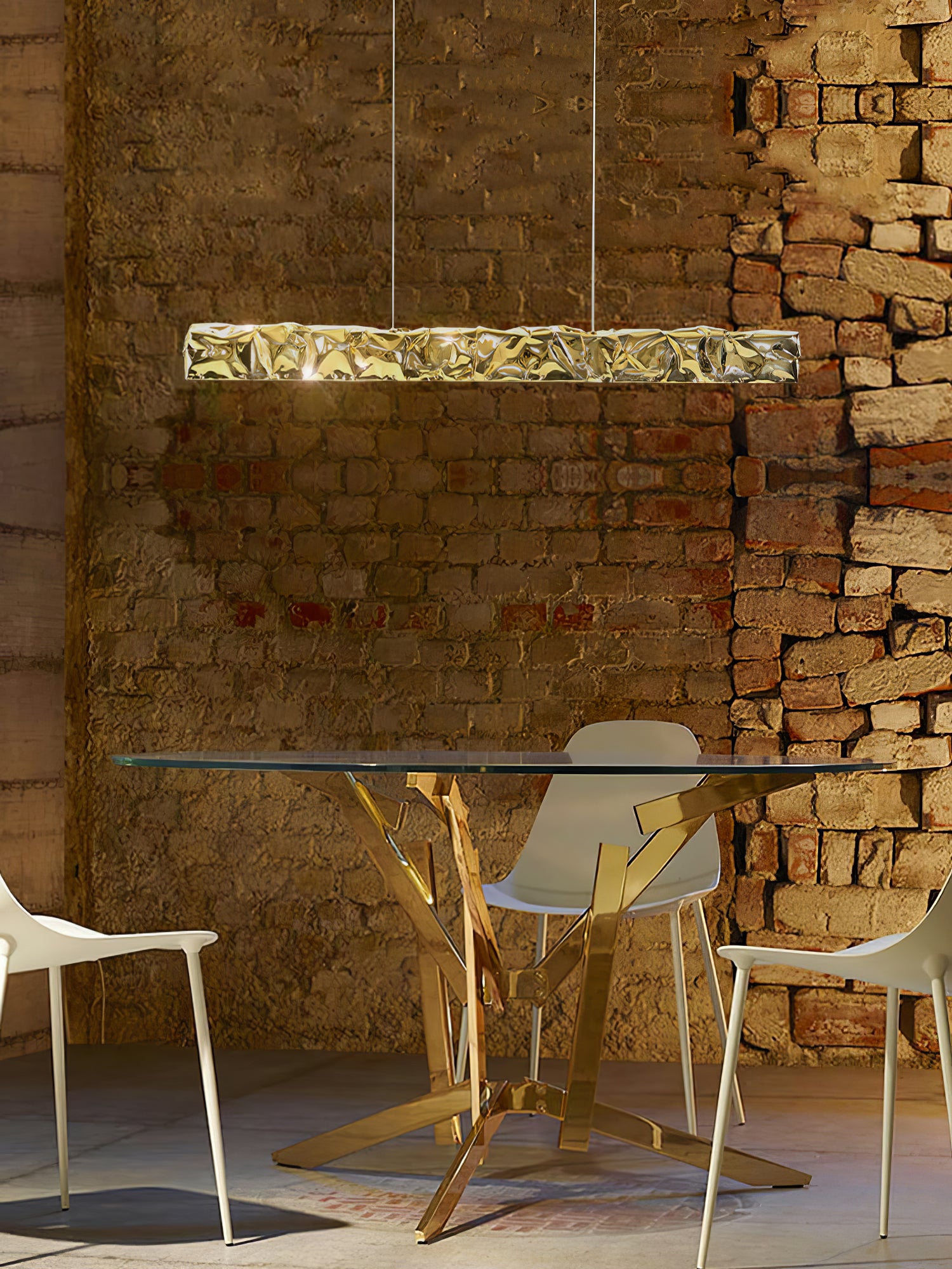 Tämä ylellinen, mutta minimalistinen Opinion Ciatti -riippuvalaisin on valmistettu kuparista ja siinä on kultainen lehtivarjostin ja se lähettää lämmintä LED-valoa, joka lisää ripauksen glamouria mihin tahansa tilaan. Tyylikäs lisä mihin tahansa sisustukseen.