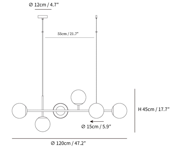 Ulkomaiset köydet yhdistävät lasipallot kaikkiin suuntiin linjaa pitkin luoden visuaalisesti vaikuttavan esityksen. Pysty- tai vaakaversiot ovat saatavilla.