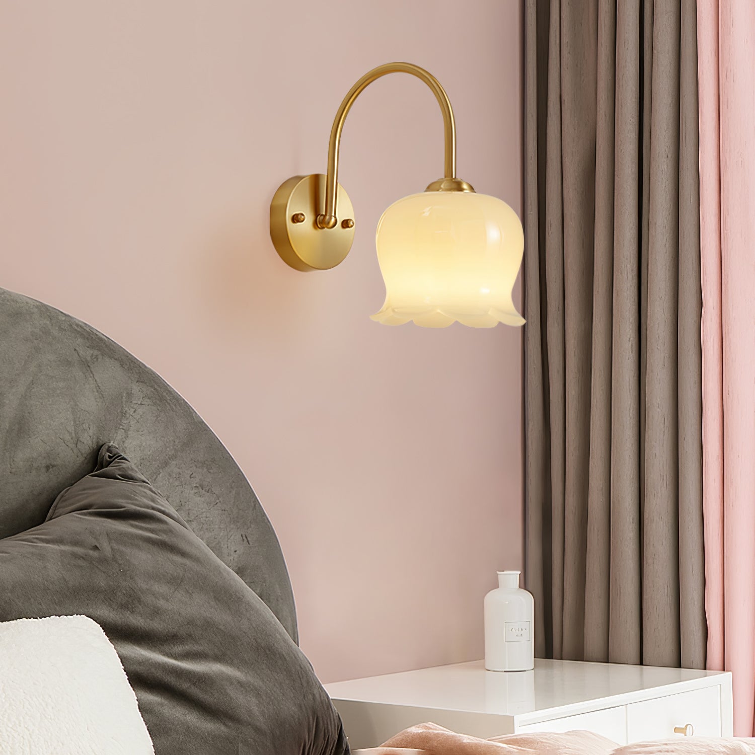 Tässä ajattomassa Orchids-seinävalaisimessa on kaunis messinkinen valaisinrunko orkidean muotoisella varjostimella, joka antaa kirkasta ja tasaisesti jakautunutta valoa tilaan. Sen lämmin muotoilu ja kestävä materiaali luovat kutsuvan tunnelman, joka sopii täydellisesti mihin tahansa kodin sisustukseen.